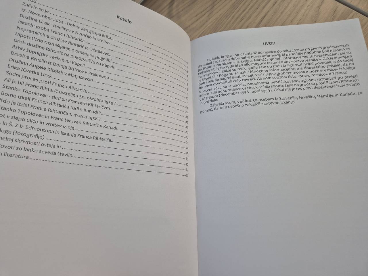 V knjigi je Ivan Rihtarič med drugim zapisal, da obstaja možnost, da je bil pokojni Franc Rihtarič po domnevni ustrelitvi tudi v Sloveniji: