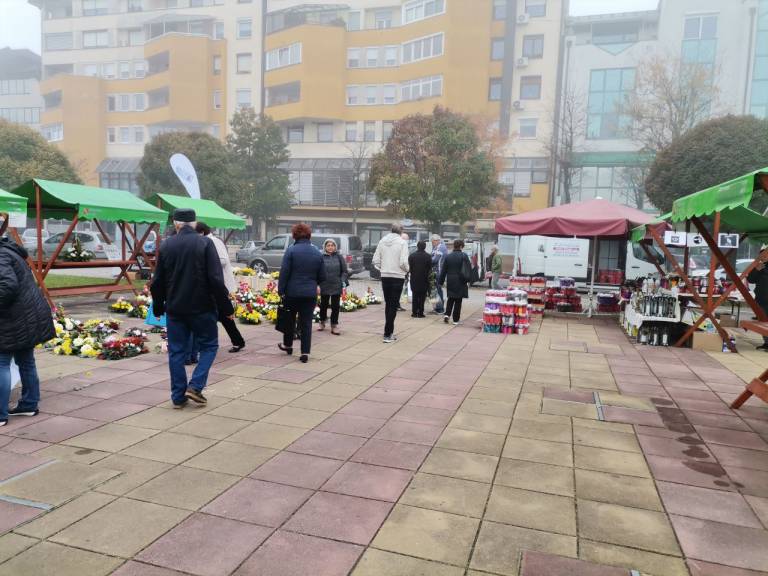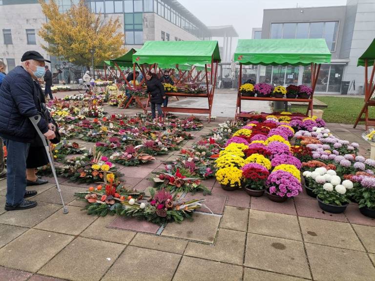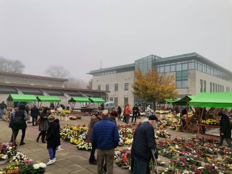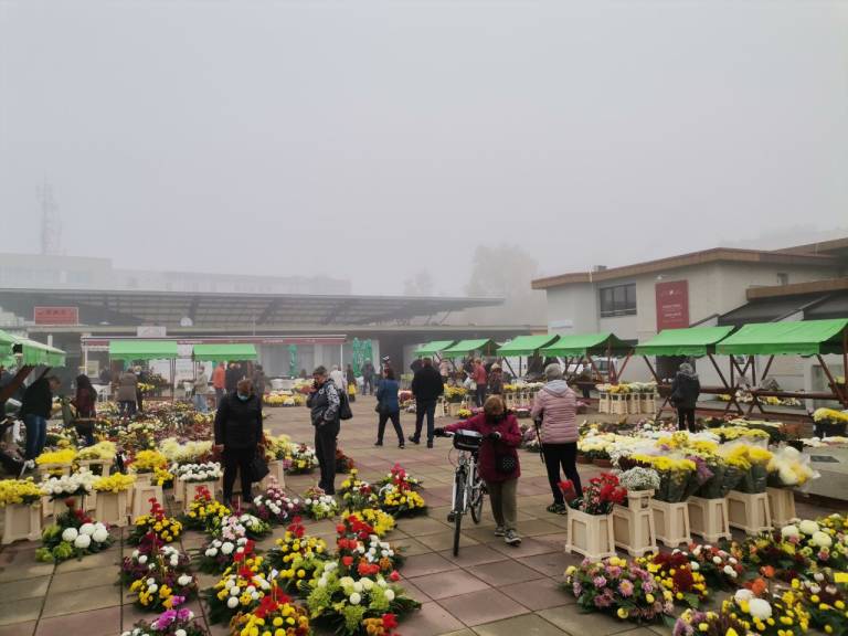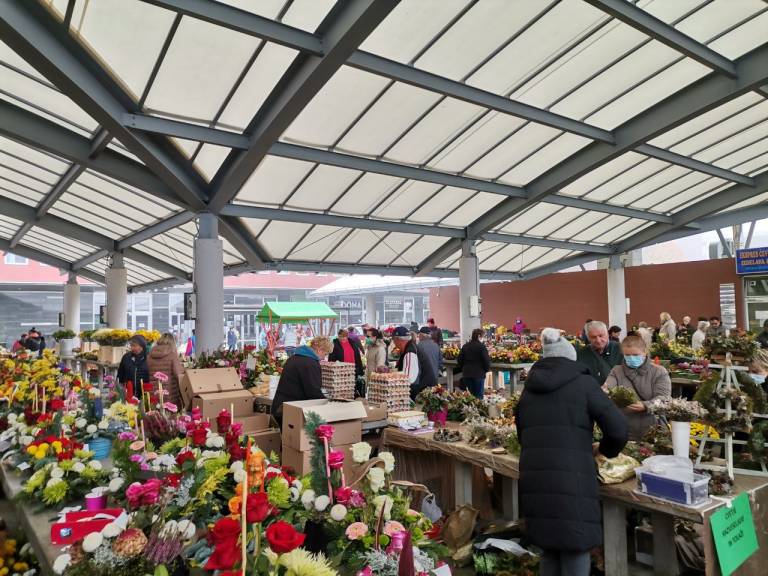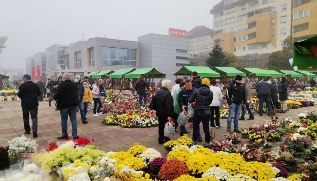 Kljub jutranjemu slabemu vremenu pa je te dni murskosoboška tržnica polna ponudnikov nagrobnih aranžmajev, tako suhih kot živih. Najdemo tudi prodajalce sveč, kljub epidemiološkim razmeram pa je tudi veliko kupcev.