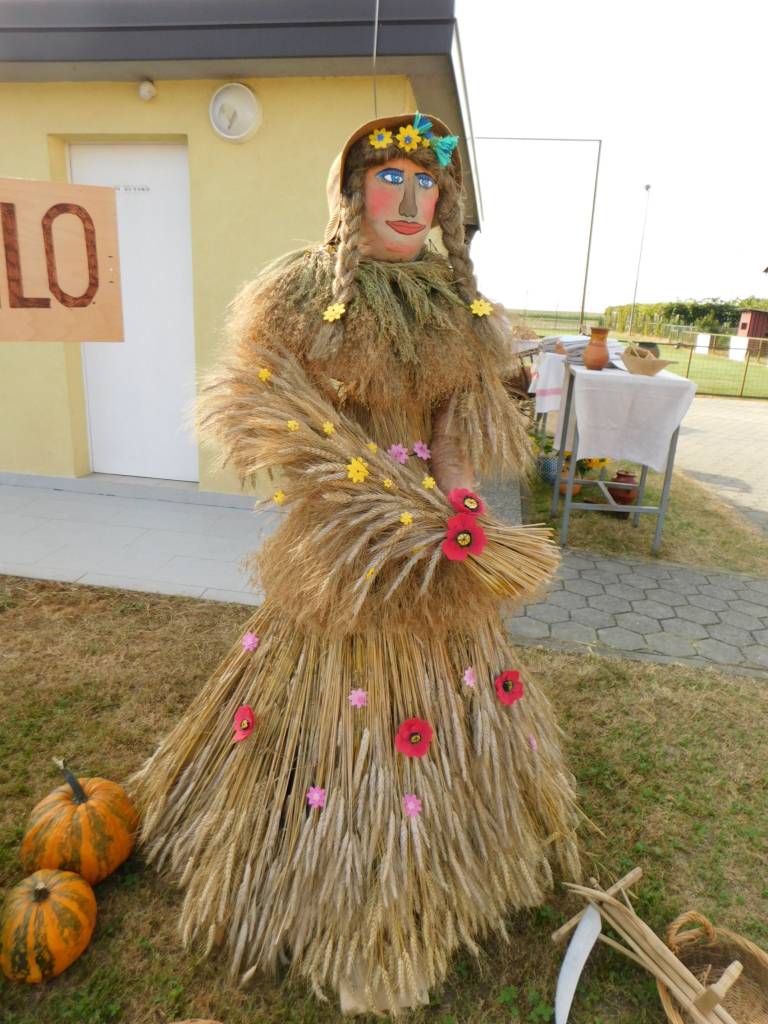 Za njeno obleko so poželi zlato rumeno pšenično klasje in jo okrasili s cvetlicami. Prostor okrog nje so okrasili z jesenskimi pridelki.