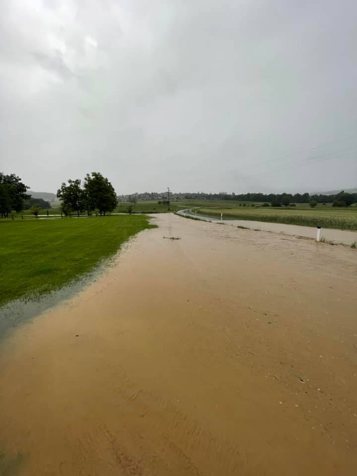Kot je razvidno iz fotografij, so bile zaradi obilnega deževja ponekod poplavljene tudi ceste.