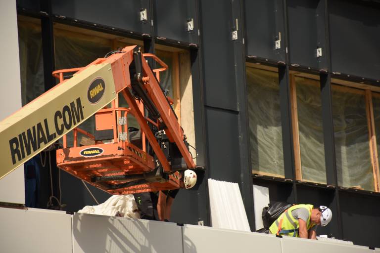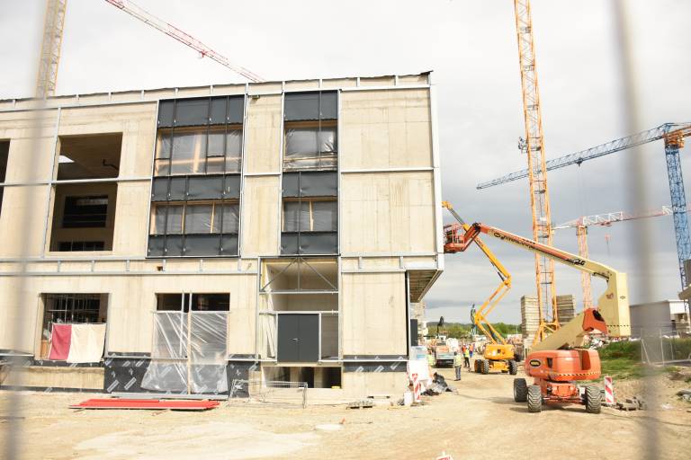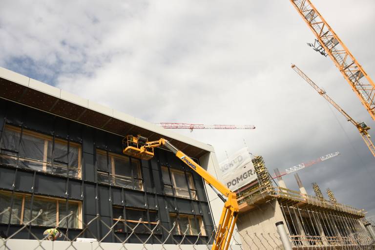 Kot zanimivost je poudarila, da gradbišče že zdaj zaznamuje šest velikih žerjavov, ki so vidni iz okolice, bližnjih gričev in avtoceste.
