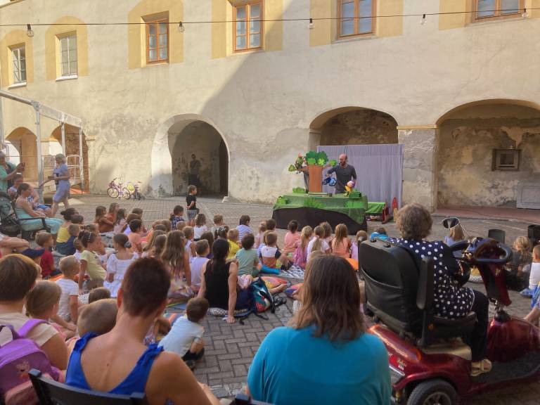 Na grajski ploščadi v Murski Soboti so pripravili lutkovno predstavo za otroke.