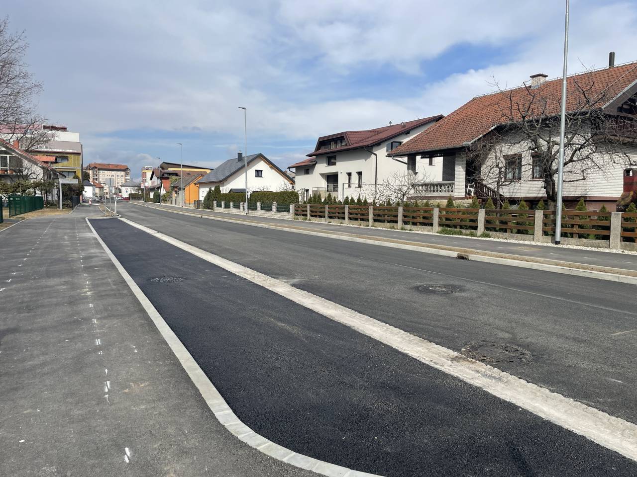 Kot je razvidno iz slik, so cesto res preplastili in je asfaltirana. Je pa trenutno še postavljena zapora pri krožnem na Gregorčičevi ulici, tako da v celoti cesta še ni odprta za promet. P