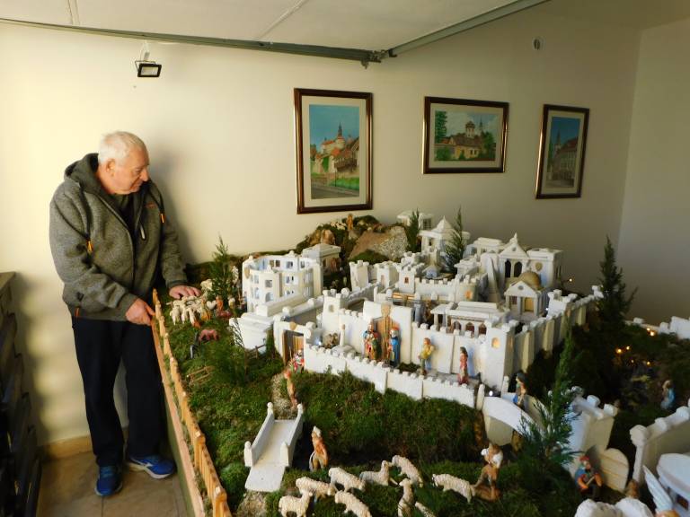 Njegove jaslice spadajo v projekt Božična vas Banovci in so nekaj posebnega. Potem, ko jih je jaslice izdelal in postavil, sta se z ženo odpravila v gozd Murščak, kjer sta nabrala zelenje in mah, ki krasita jaslice.