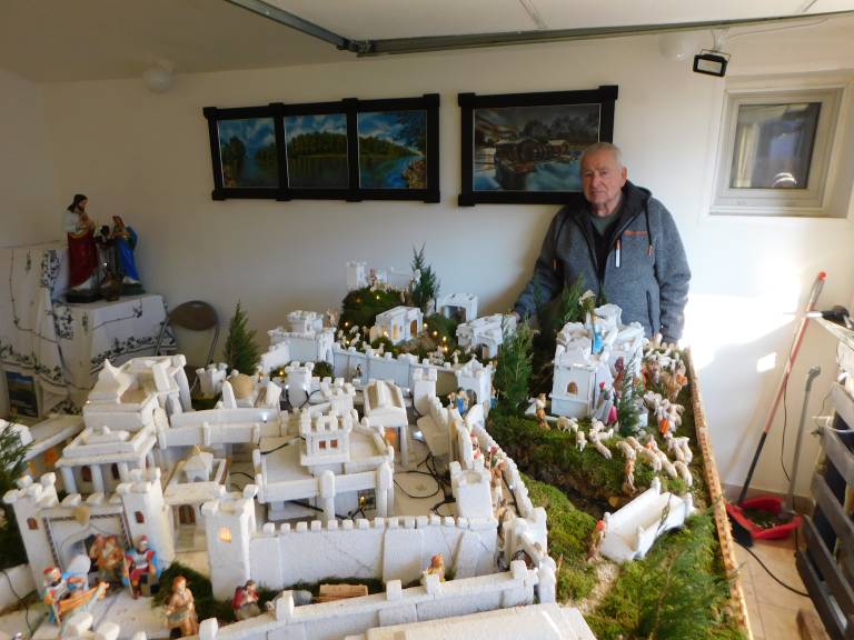 V postavitvi jaslic je poudaril in postavil mesto Betlehem z Oljsko goro, kjer se je pred več kot 2000 leti v hlevčku rodil mali Jezušek. Maketo jaslic je izdelal iz siporeksa.