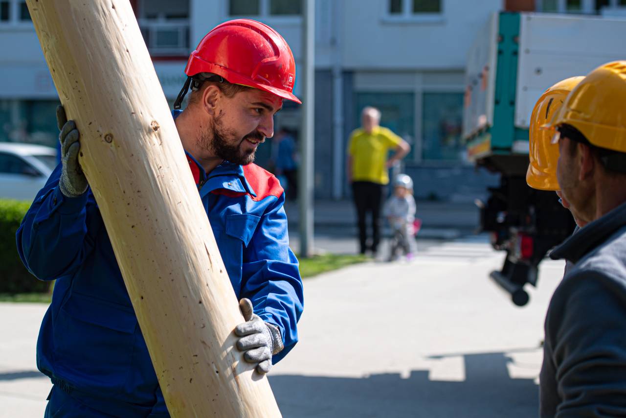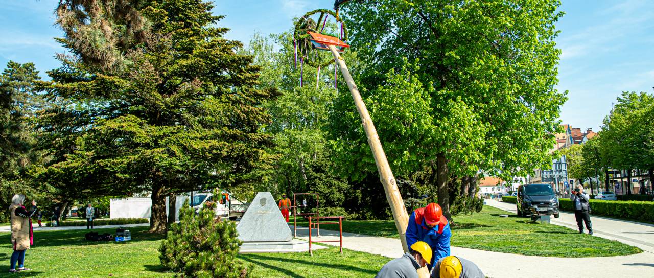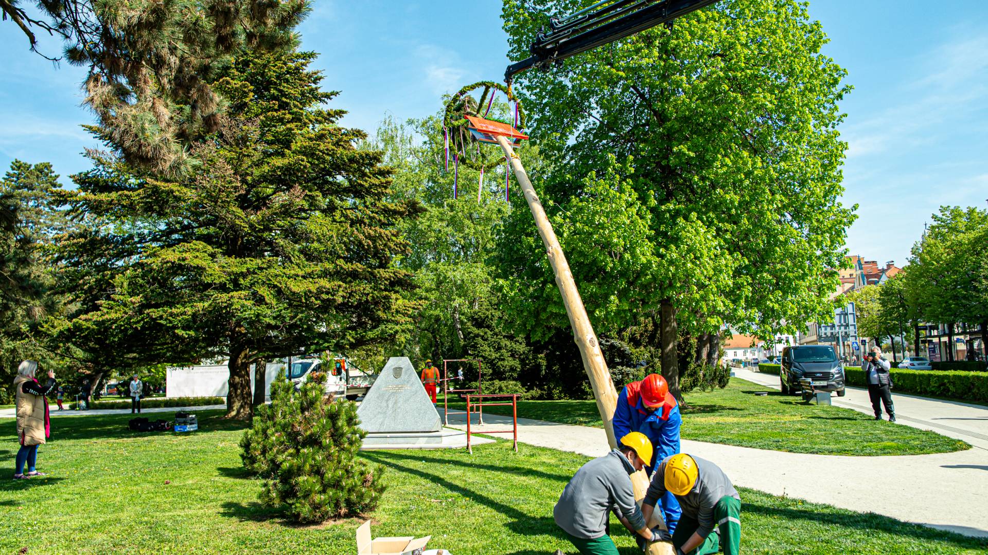 Na Trgu zmage v Murski Soboti so tradicionalno postavili prvomajski mlaj.