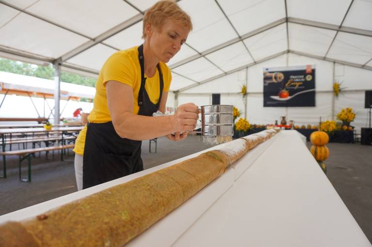 Vrhunec praznika je bilo brez dvoma slavnostno razrezovanje 20-metrske bučne rulade velikanke, ki je bila prava paša za oči in brbončice. Dogodka se je udeležilo veliko število obiskovalcev, ki so bili priča temu zgodovinskemu trenutku.
