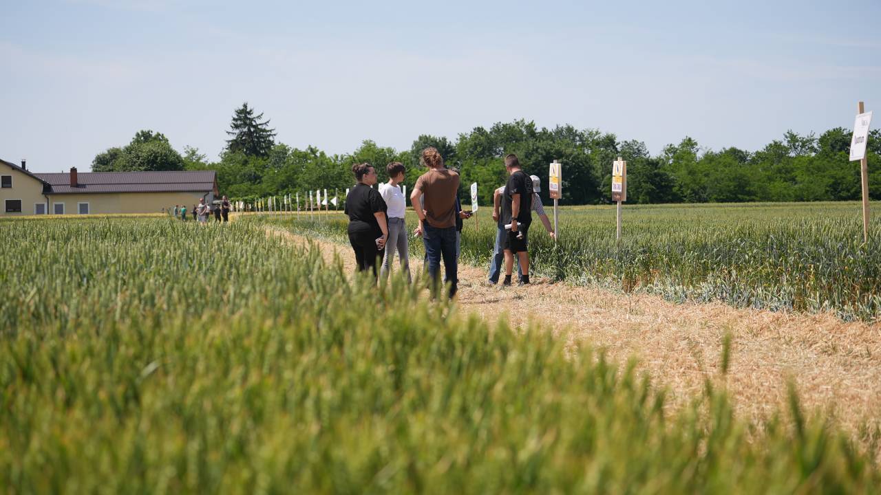 Po strokovnem delu so se udeleženci odpravili na poskusna polja, kjer so si pod strokovnim vodstvom ogledali sortiment žit različnih semenarskih hiš in se prepričali o razlikah med posameznimi sortami.