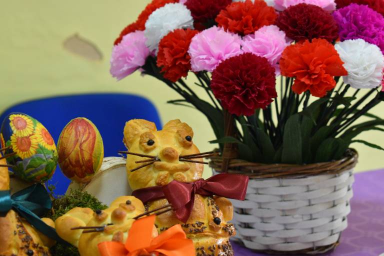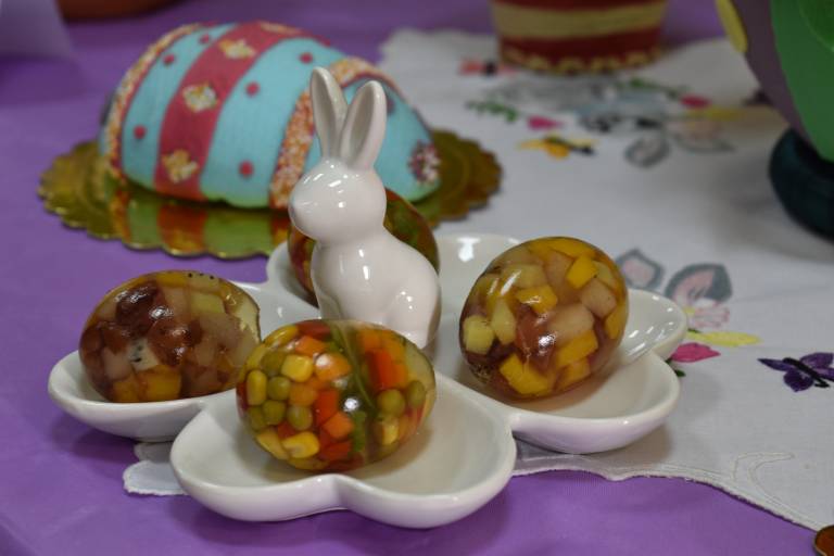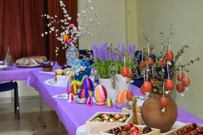 Razstavljene so bile blagoslovljene jedi in različne tehnike izdelovanja pisanic. Predstavili so tudi, kako se je pihre barvalo nekoč.