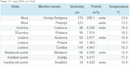 Posamezni vodotoki lahko tudi poplavijo. V severovzhodni Sloveniji je namočenost tal že velika, kar bo povečalo površinski odtok.
