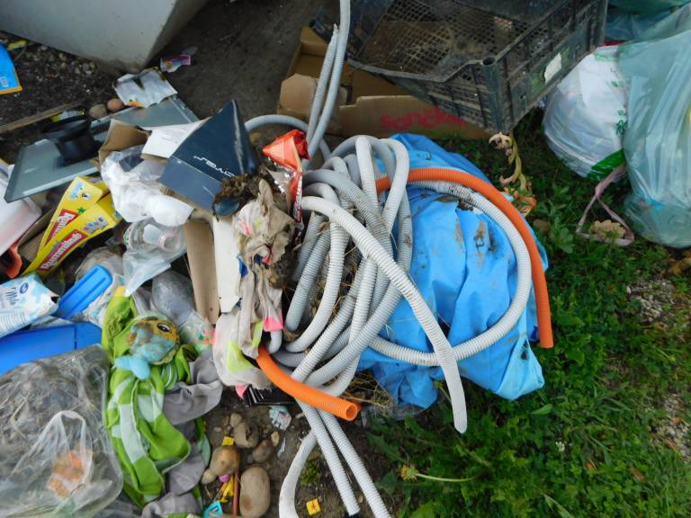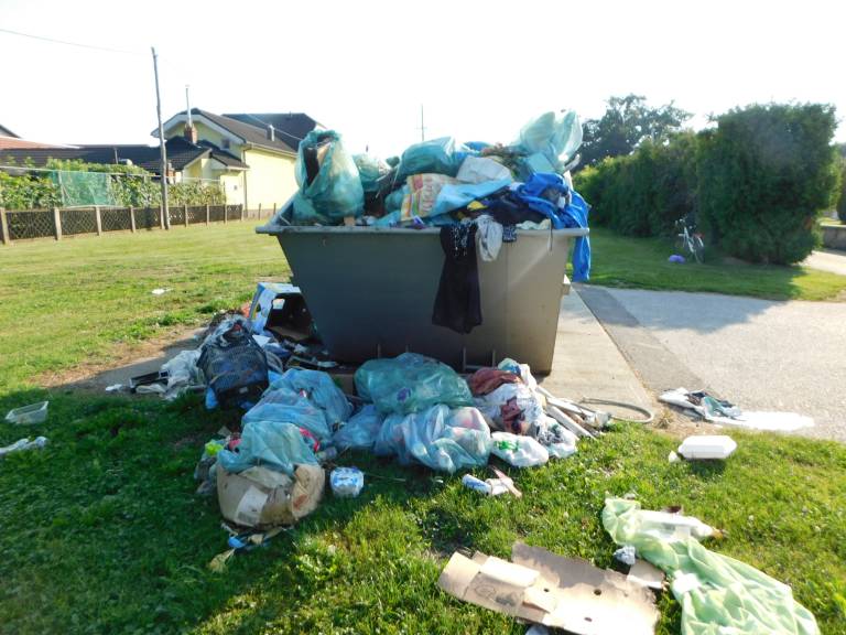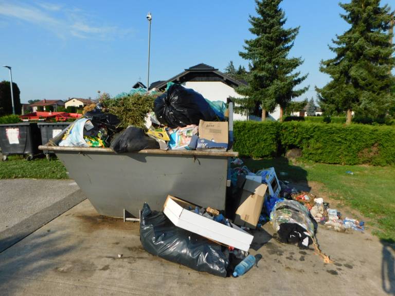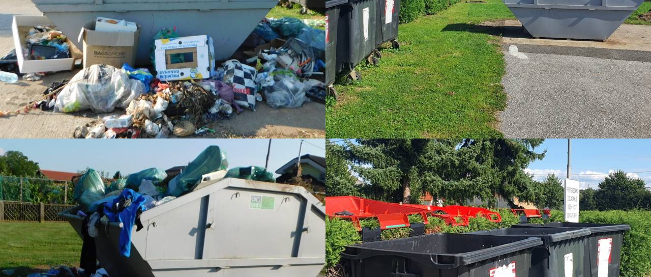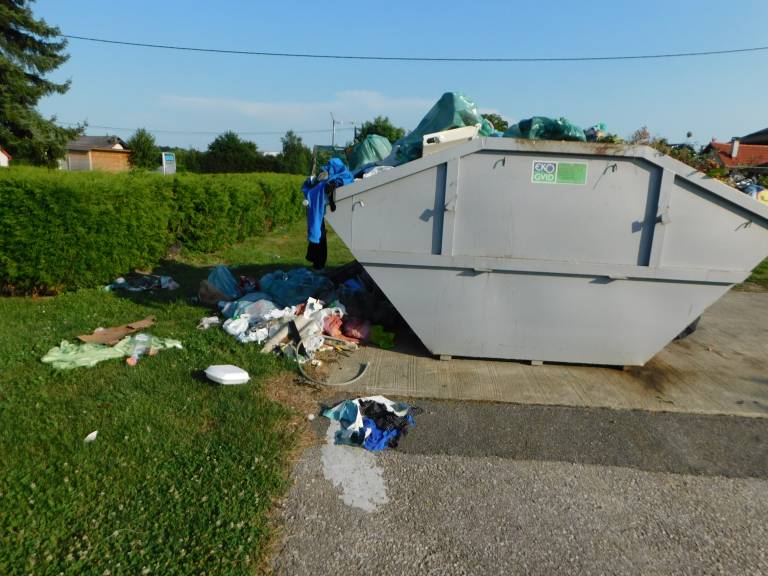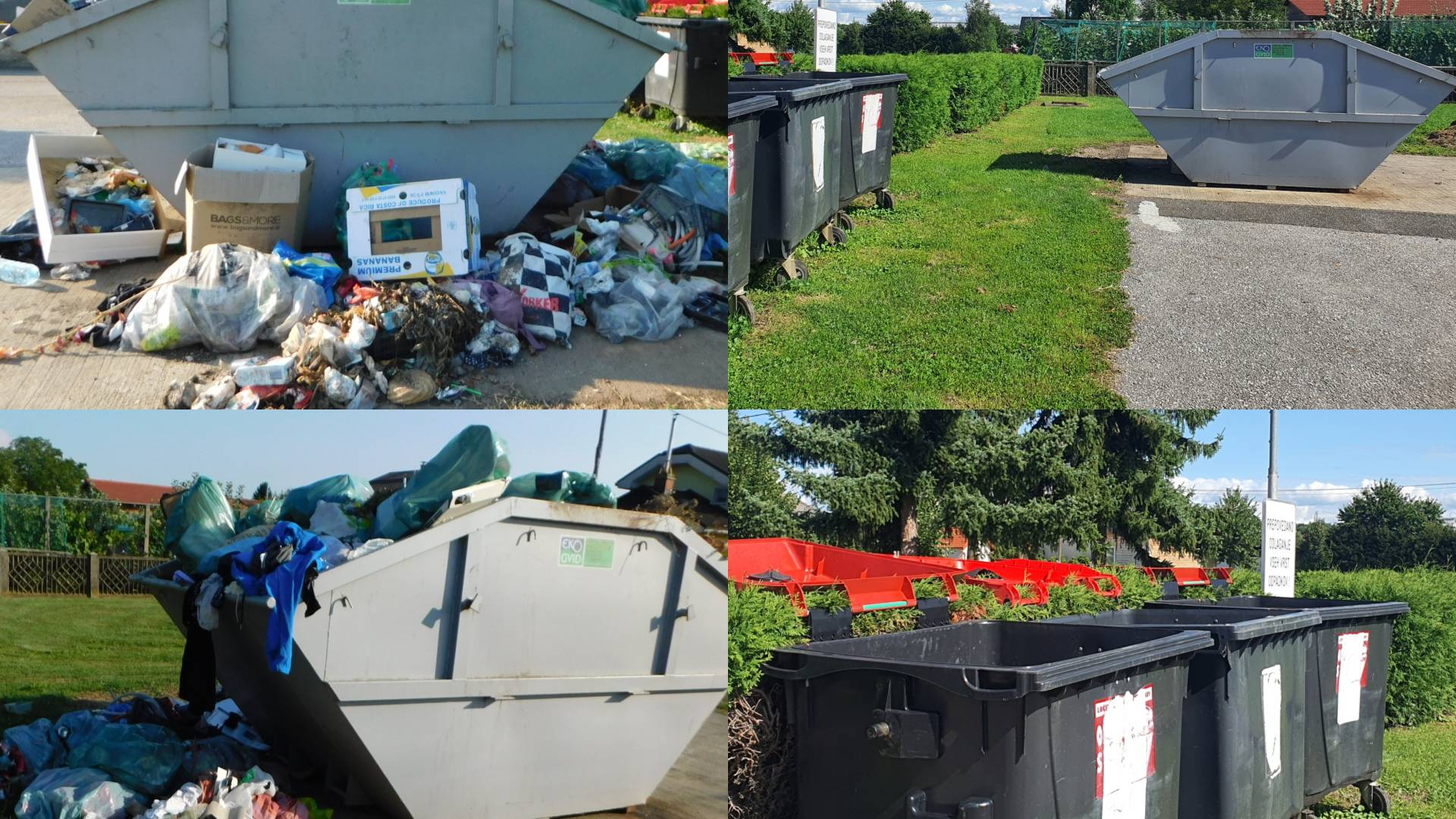Kot je razvidno iz fotografij, se kljub opozorilni tabli, na kateri piše, kaj sodi v zabojnik in kaj ne, nekateri posamezniki požvižgajo na opozorilo.