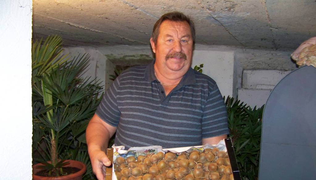 Gospodar Ignac Gerič je nad pridelkom zelo zadovoljen, kivi je zložil v lesene zaboje in ga dal na hladno v klet, da bo postal mehek, saj je takrat primeren za uživanje.