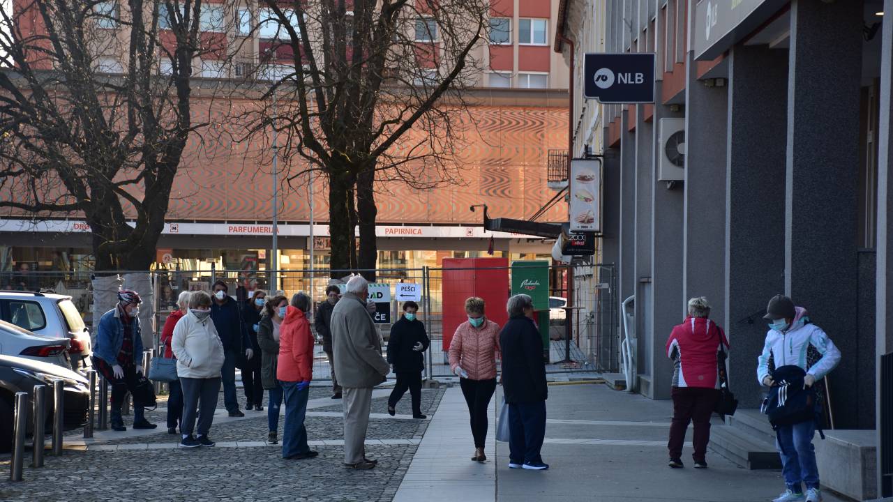 Čeprav so jih banke povzale, naj tisti z bančno kartico dvig raje opravijo na bankomatu, kolon pred bankomati ni bilo, so bile pa pred bankami.