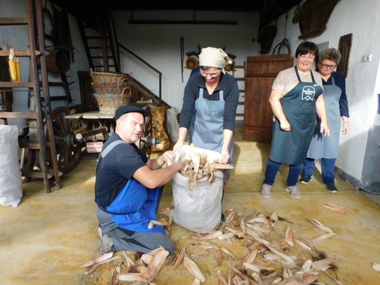 Vse, ki so udeležili ličkanja koruze, so organizatorji po končnem opravilu ‒ tako kot se spodobi po opravljenem delu ‒ tudi pogostili s pravimi domačimi jedmi, pripravljenimi predvsem iz koruzne moke na tradicionalen način.