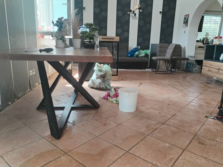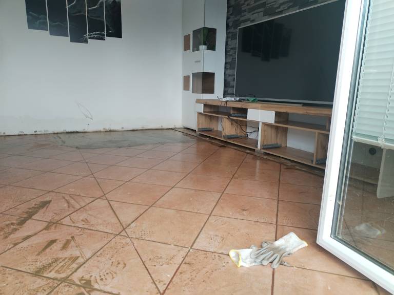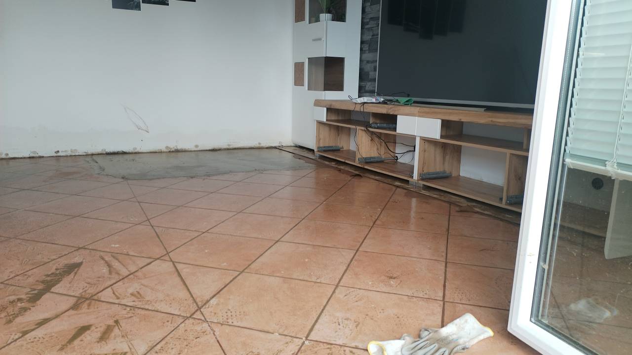 »Poplavilo nam je celo spodnjo etažo - kopalnico, hodnik, klet, dnevno sobo in garaže. Tast, ki je na vozičku, je bil zunaj, po stopnicah smo ga spravili gor, da je šel noter,« pravi Leš.