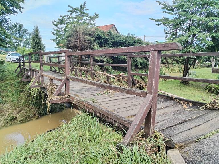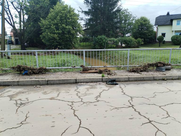 »Zelo je začelo deževati. Najprej je bila tukaj cesta poplavljena, potem smo videli, da je bila že pri sosedih. To je bilo vse na hitro,« pripoveduje krajanka Natalija Leš.