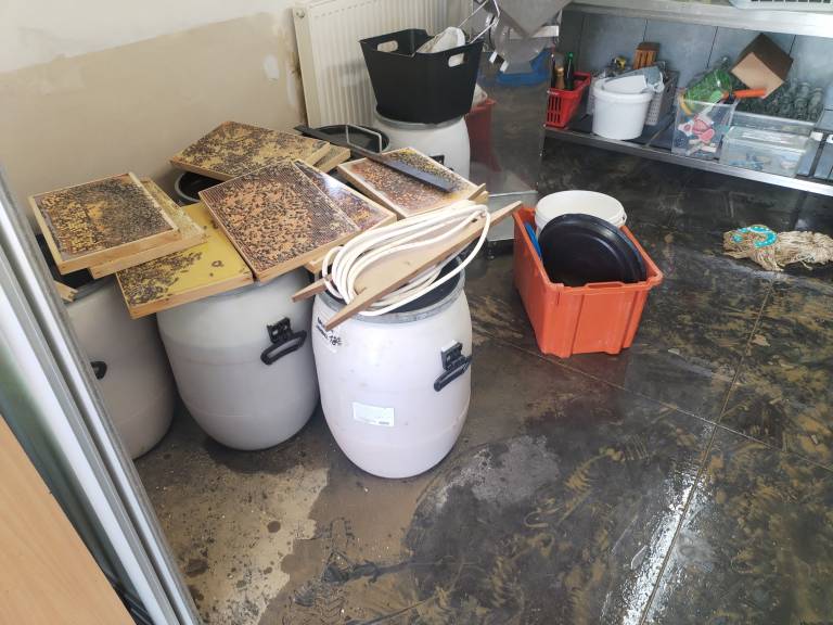 »Kletne prostore nam je poplavilo v nekaj minutah. Smo imeli tri pumpe, potopno in dve motorni. Kdaj je voda začela iti preko ograj, nismo več mogli rešiti nič. Meter in pol vode smo imeli v kleti,« pripoveduje domačin Andrej Zemljič.
