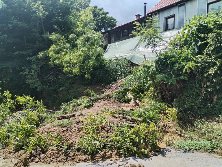 Potem ko se je čisto vse umirilo, ko je nehalo padati, je pa tisti del odspodaj odtrgalo proti sosedom dol. Jaz sem mislila, da me bo kap, nisem vedela, kaj naj. Kličem partnerja, ni mogel priti, ker je bila cesta poplavljena,« včerajšnje dogajanje opisuje Pajnič.