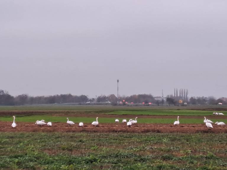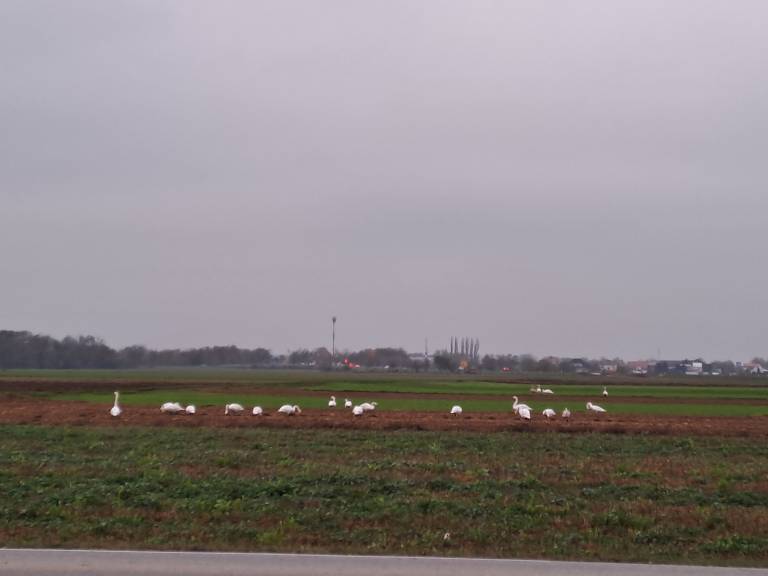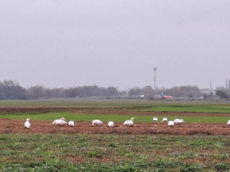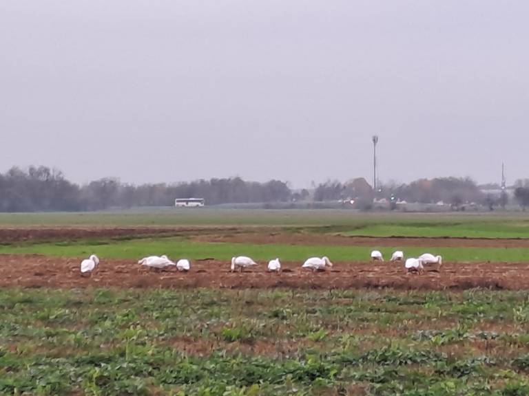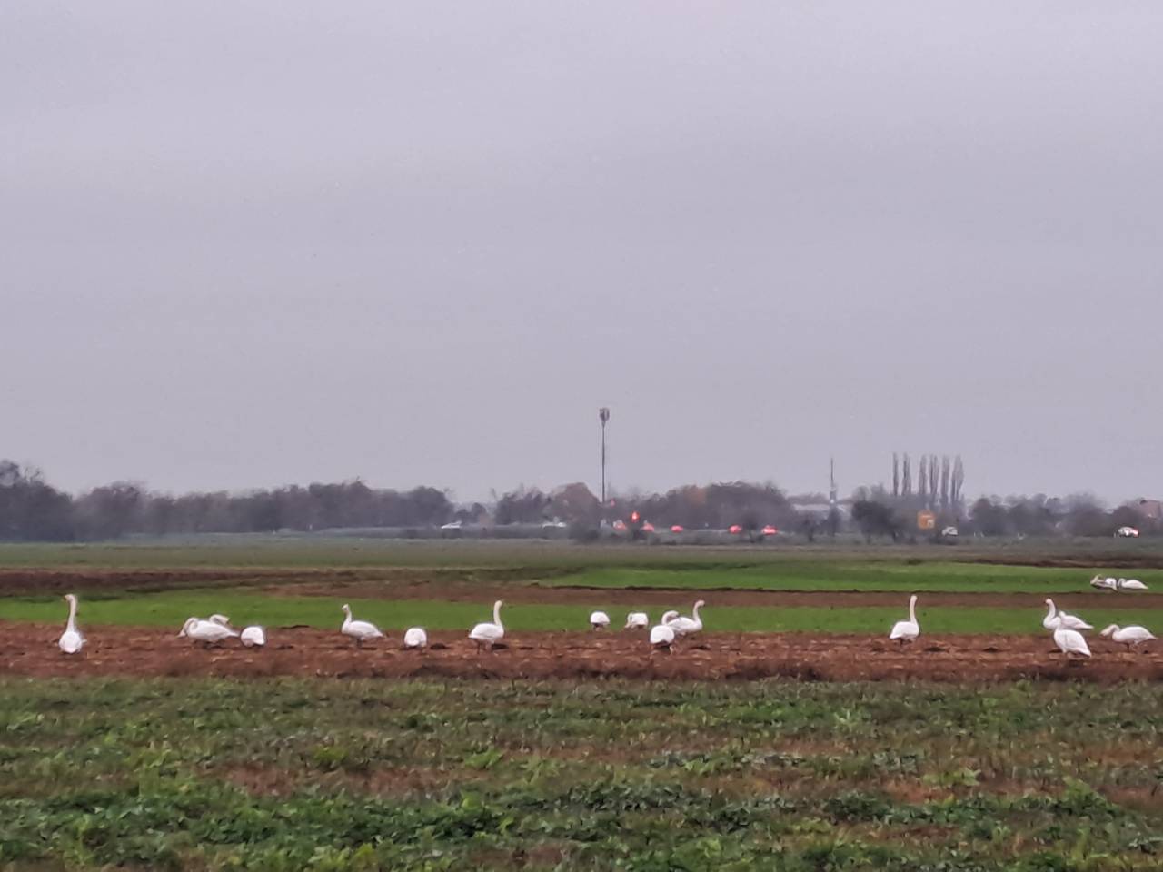 Še posebej v zimskih mesecih se na poljih pojavljajo večje jate labodov, ki tam počivajo in se prehranjujejo.