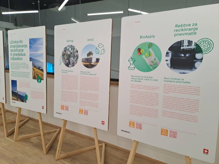 Razstava je izpostavila dosežke Švice in Slovenije na področju razvoja čistih tehnologij, ki naslavljajo aktualne izzive, kot so podnebne spremembe, reciklaža in zelena mobilnost.