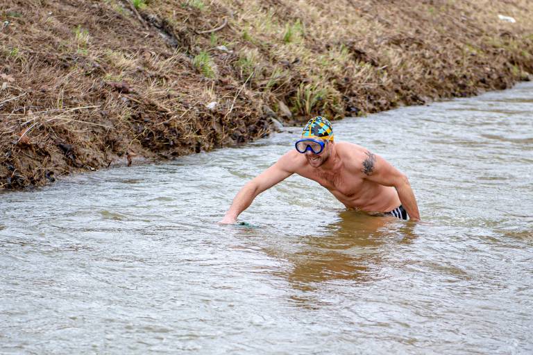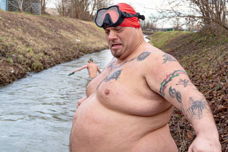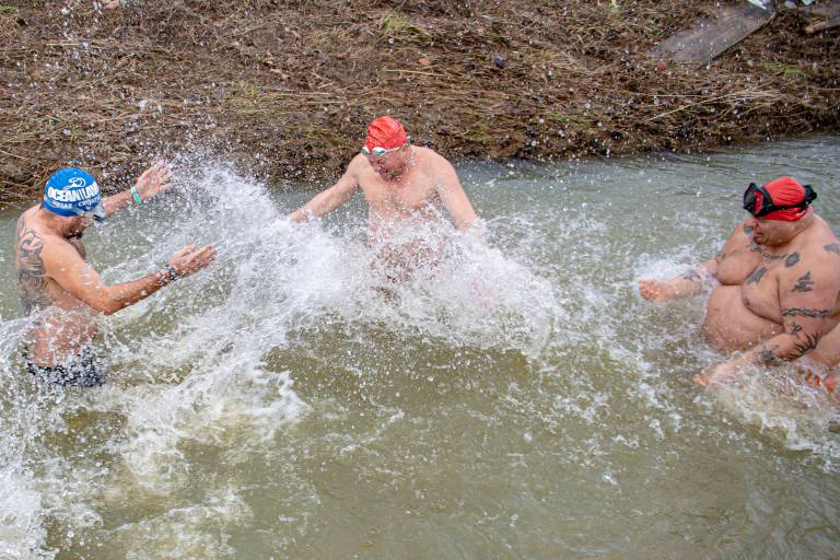 Nostalgični? Tako se je 1. januarja lani okoli 30 pogumnežev pognalo v ledeno mrzlo vodo soboške Kamenšnice.