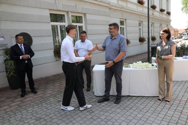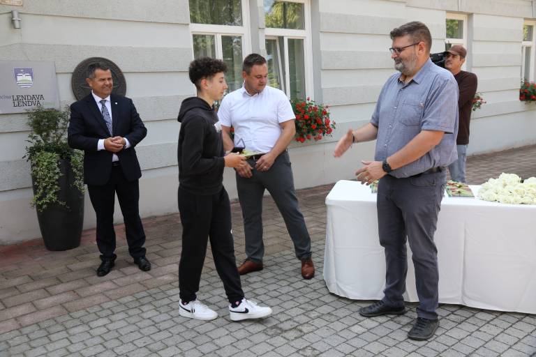 Župan občine Lendava Janez Magyar je danes ob 11. uri pred mestno hišo sprejel najuspešnejše učenke in učence osnovnih šol v občini ter učenke in učence Glasbene šole Lendava.