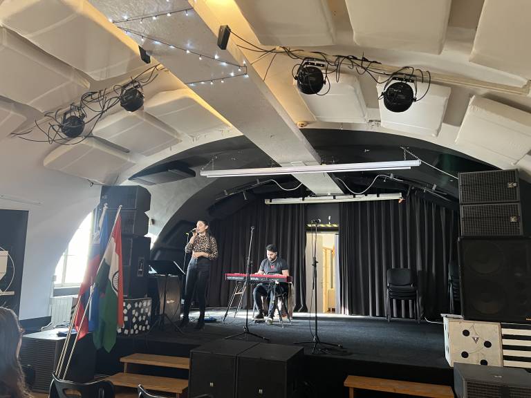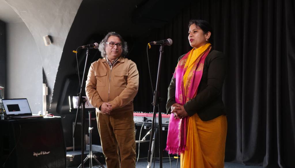 Po koncu predavanja se je odvil krajši glasbeni del, v katerem sta nekaj odličnih pesmi v duetu predstavila Nina Brasseur in Denis Maver, nato pa je sledila še manjša pogostitev, v kateri so brbončice obiskovalcev napolnili okusi indijskih jedi.