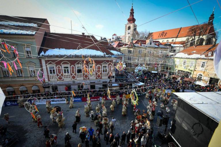 Mednarodna karnevalska povorka, vrhunec 58. Kurentovanja, je preplavila največji etnografski muzej na prostem v Sloveniji z 2500 glavo množico etnografskih likov in karnevalskih mask, iz 41 skupin, ki so staro mesto novih doživetij ovile v pisane barve.