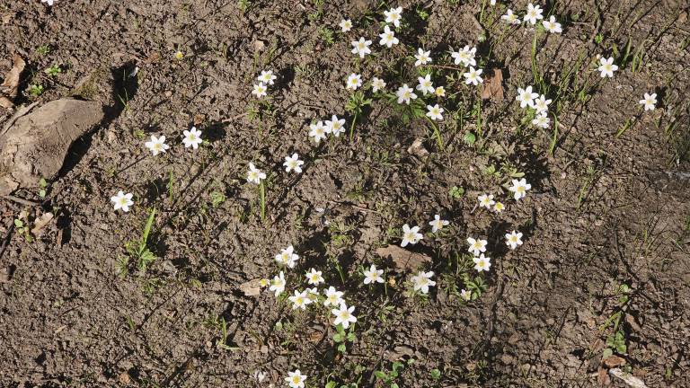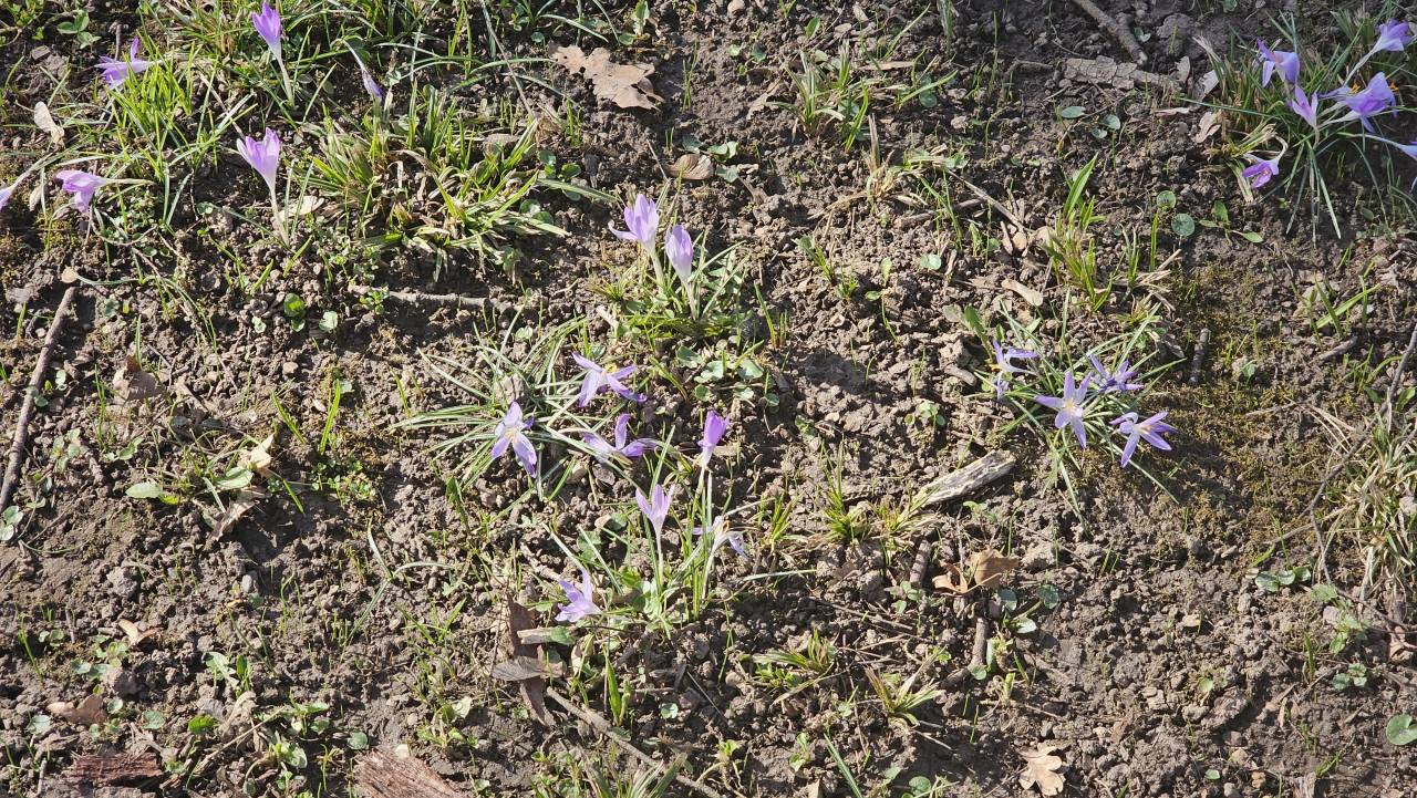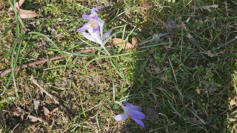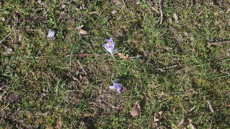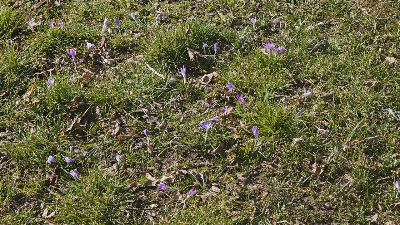 Na več mestih smo opazili preproge belih in rumenih cvetov, ki jih tvorijo nežne vetrnice, medtem ko vijolični in beli žafrani kljubujejo še vedno hladnim nočem.