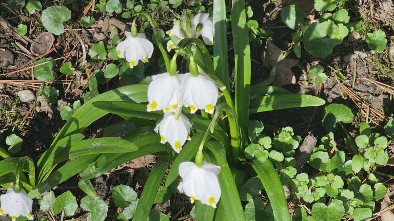 Posebno pozornost pritegnejo tudi elegantni veliki zvončki, ki s svojimi belimi cvetovi in rumenimi konicami ponosno oznanjajo prihod pomladi.