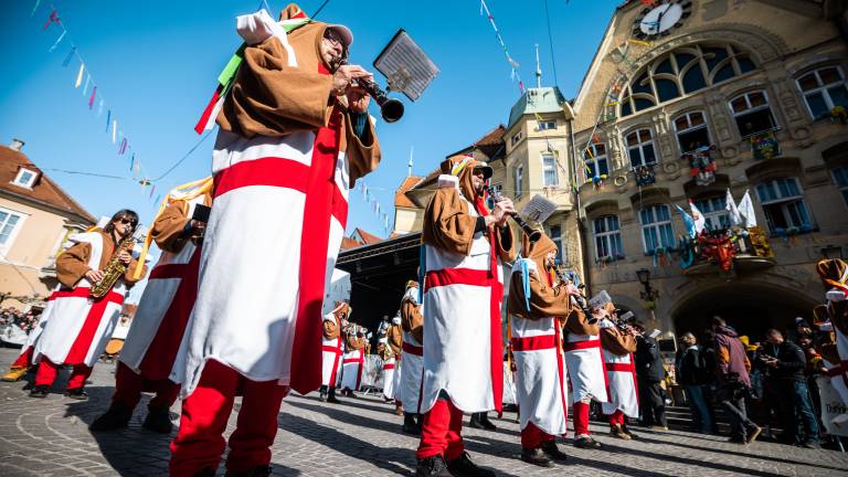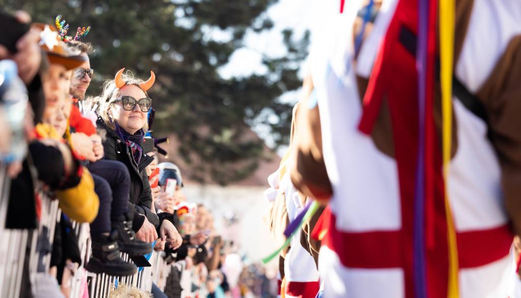Nedelja je vsakoletni vrhunec Kurentovanja, ko mesto preplavijo namaskirani obiskovalci in velike skupine zabavnih in etnografskih likov.