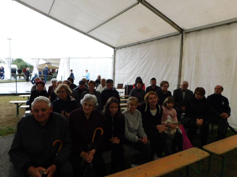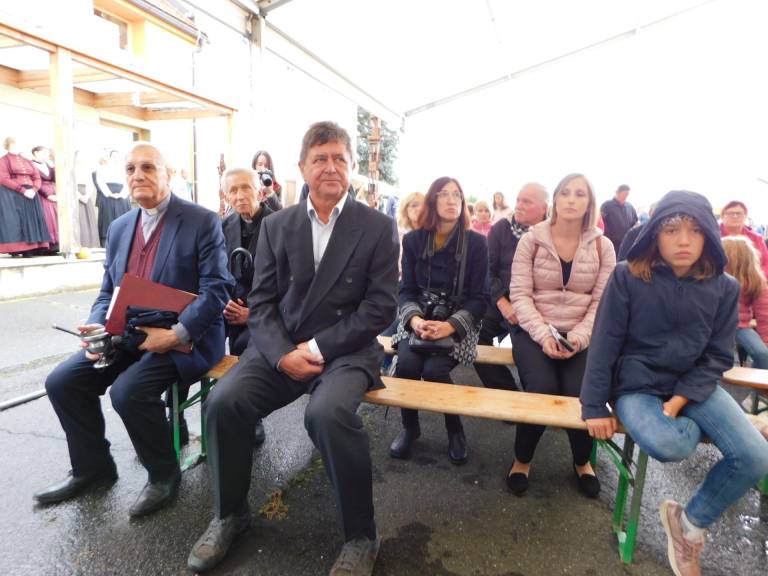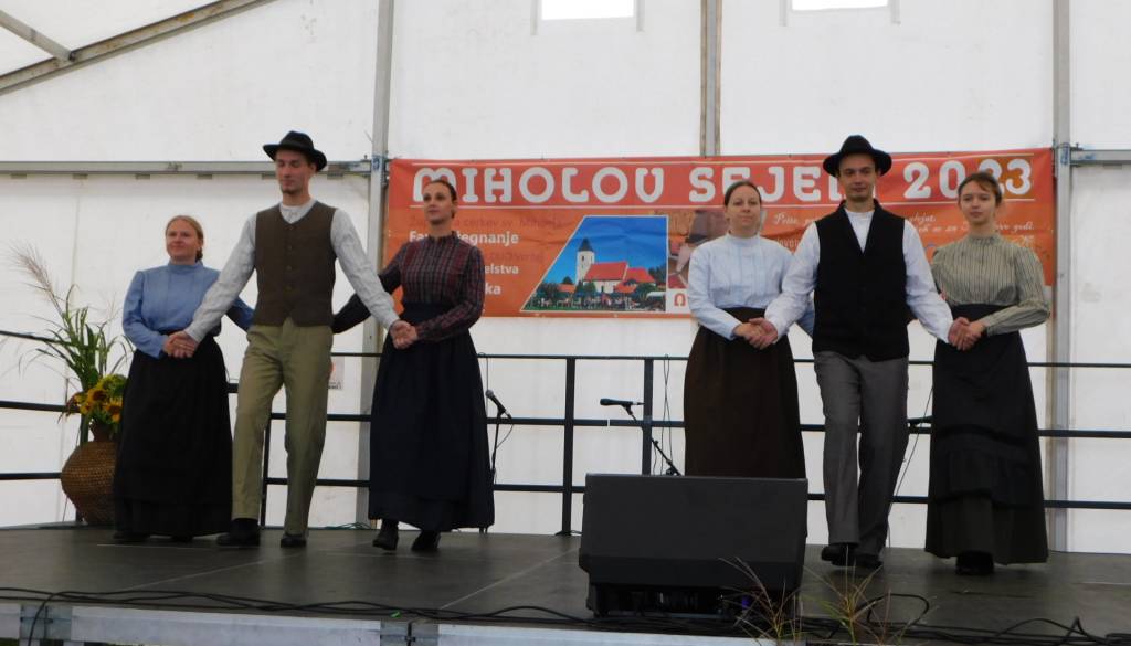 Od cerkve do prireditvenega prostora je nato potekala povorka odraslih folklornih skupin z blagoslovom folklornih kostumov in ljudskih instrumentov na sejemskem odru.