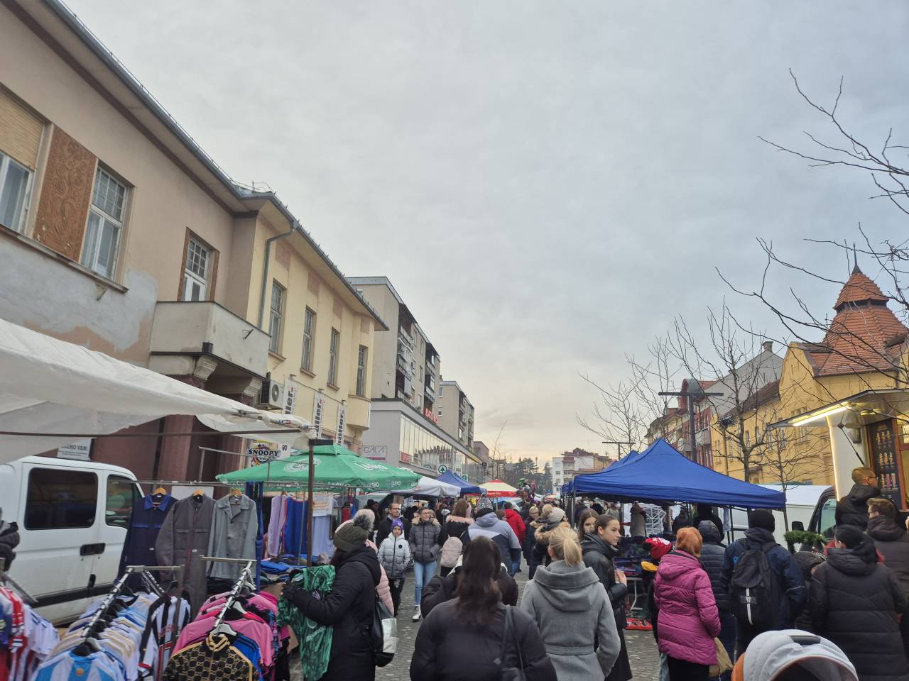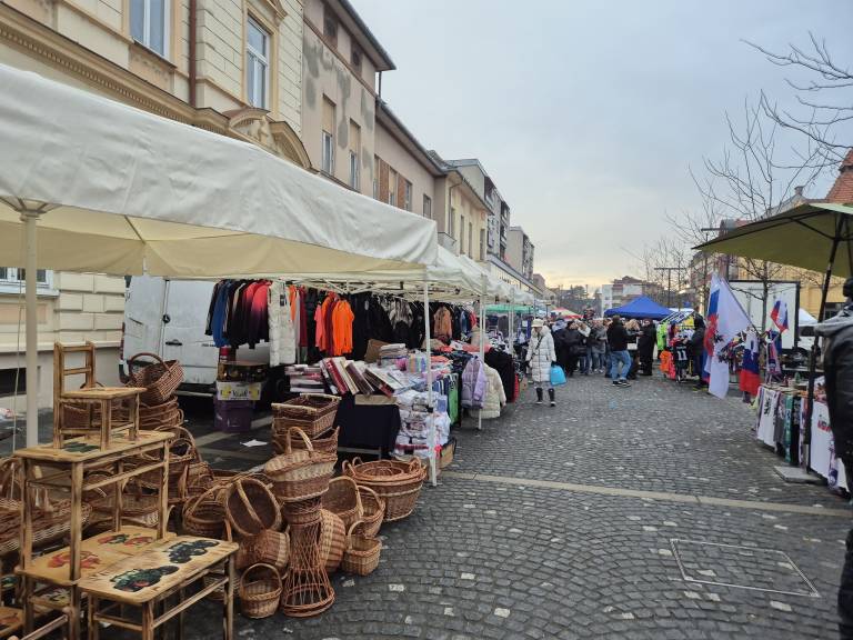 Na Slovenski ulici, Zvezni ulici, delu Ulice Staneta Rozmana, delu ulice Štefana Kovača ter parkirišču pred banko in pošto mrgoli različnih ponudnikov.