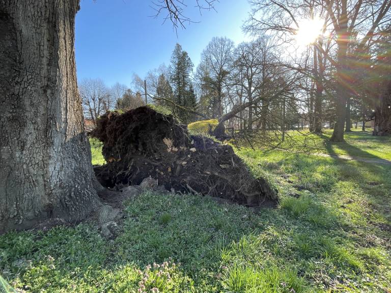 Veter je povzročal težave tudi pri Gradu, kjer so ob 17.28 gasilci Prostovoljnega gasilskega društva Grad odstranili polomljen vrh smreke, ki je ogrožal javni objekt, v Beltincih pa je močan veter v beltinskem parku izrul celotno drevo.