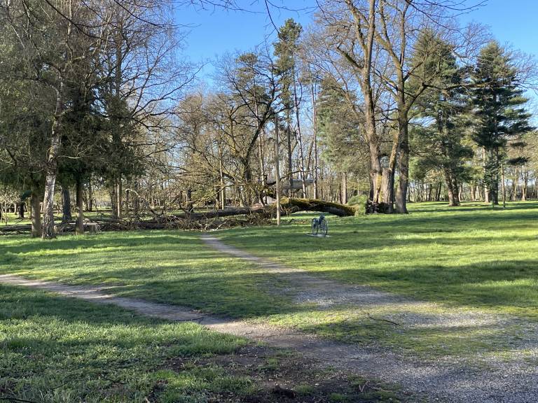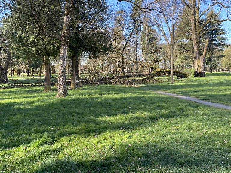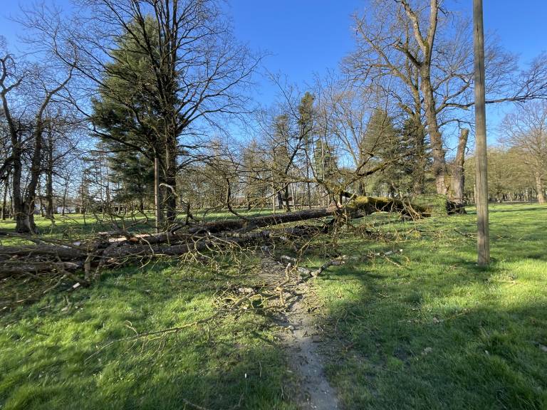 Močni sunki vetra so včeraj v Pomurju izruvali in podrli več dreves, polomljena smreka je ogrožala tudi javni objekt.