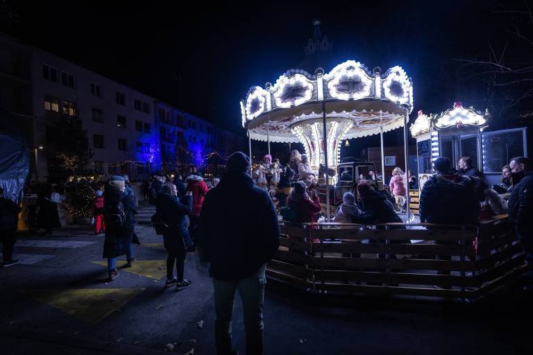 Na Trgu zmage je v prazničnem igluju postavljen Božičkov nabiralnik, prav poseben del letošnjega decembrskega vzdušja pa je tudi praznični vrtiljak.