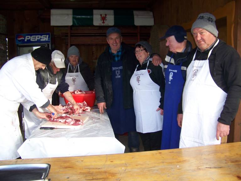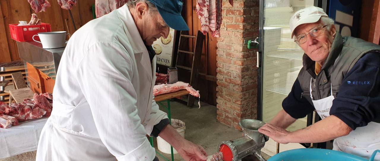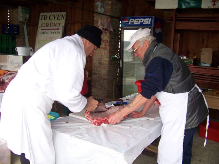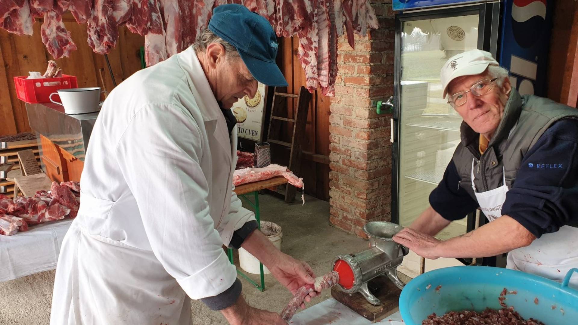 Pripravili so meso za prleško tünko, domače klobase, tlačenko, ocvirke, mast. Nekaj mesa so dali tudi v »pac« (začimbno mešanico), ter ga shranili v leseno korito za peko v krušni peči.