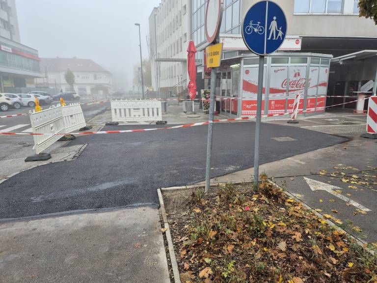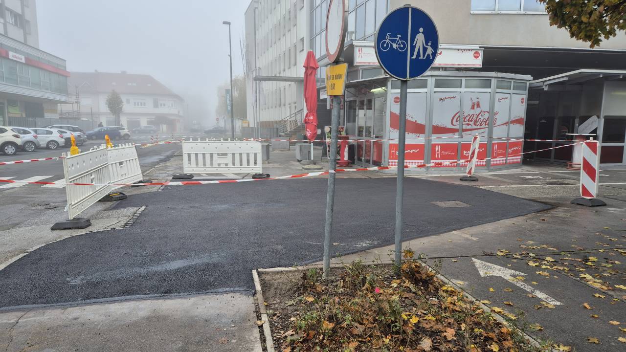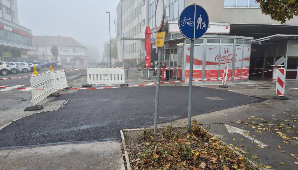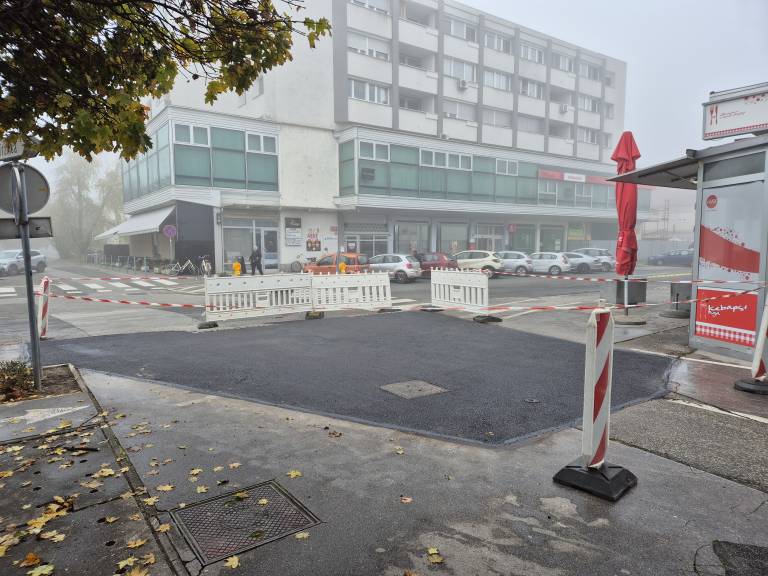 Dotrajan asfalt so zamenjali na križišču pri pekarni in kiosku s hitro prehrano.