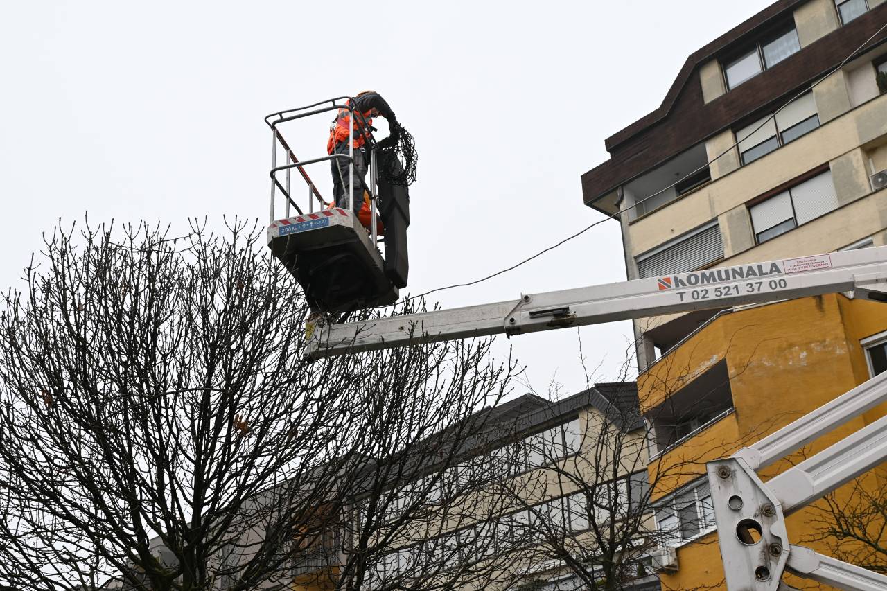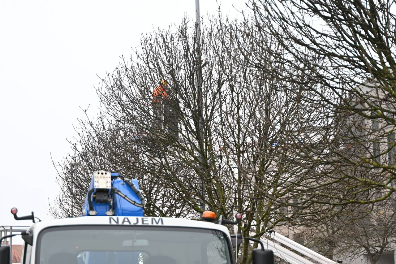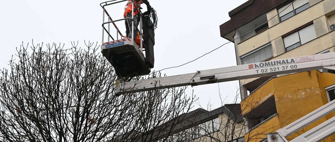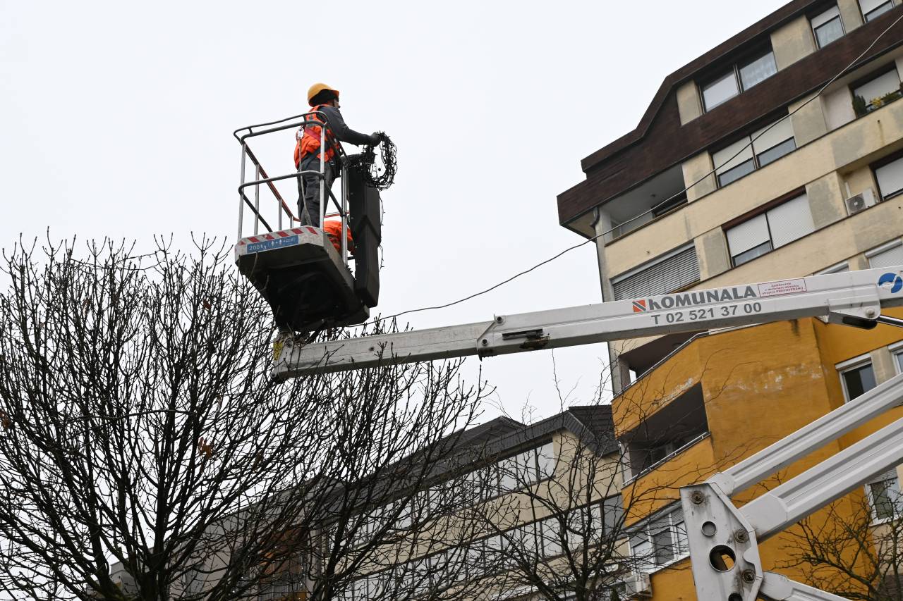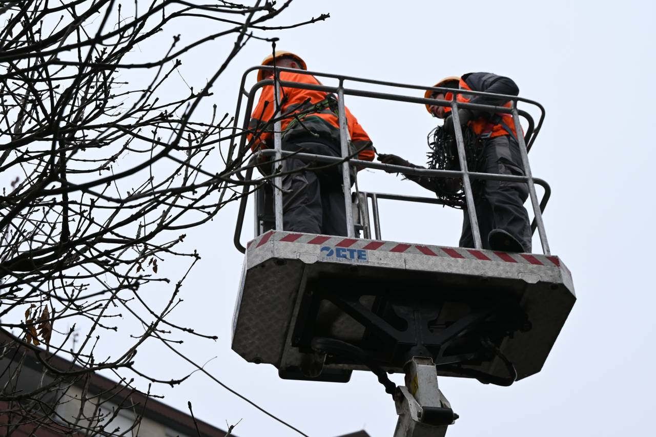 Na Kocljevi ulici v Murski Soboti smo danes opazili delavce, ki nameščajo praznično razsvetljavo.
