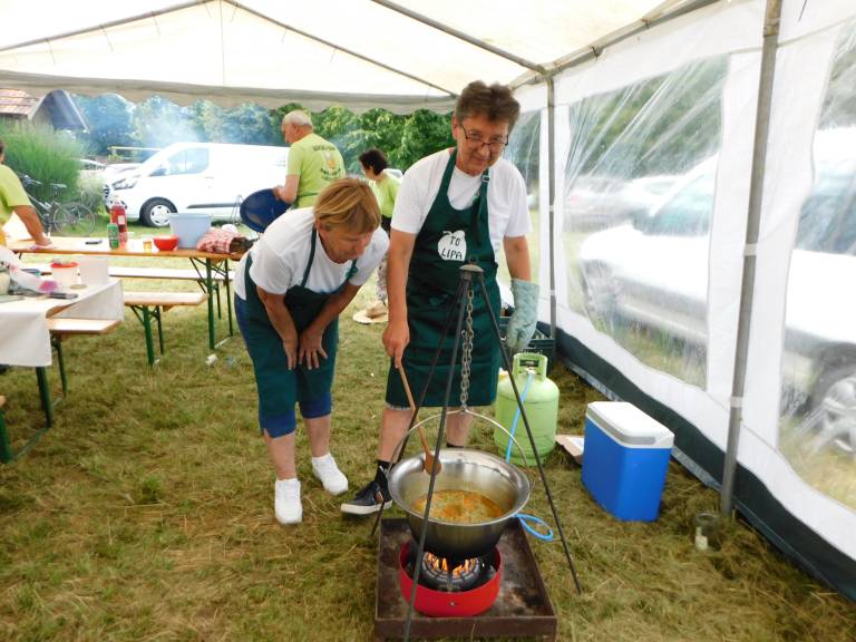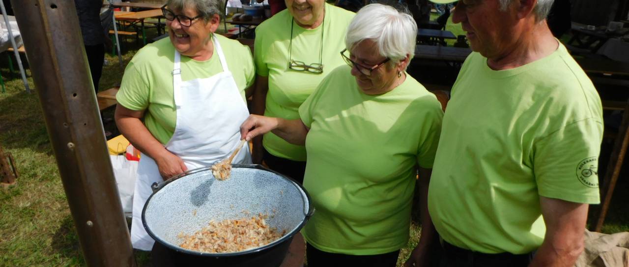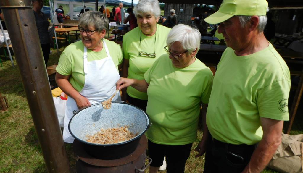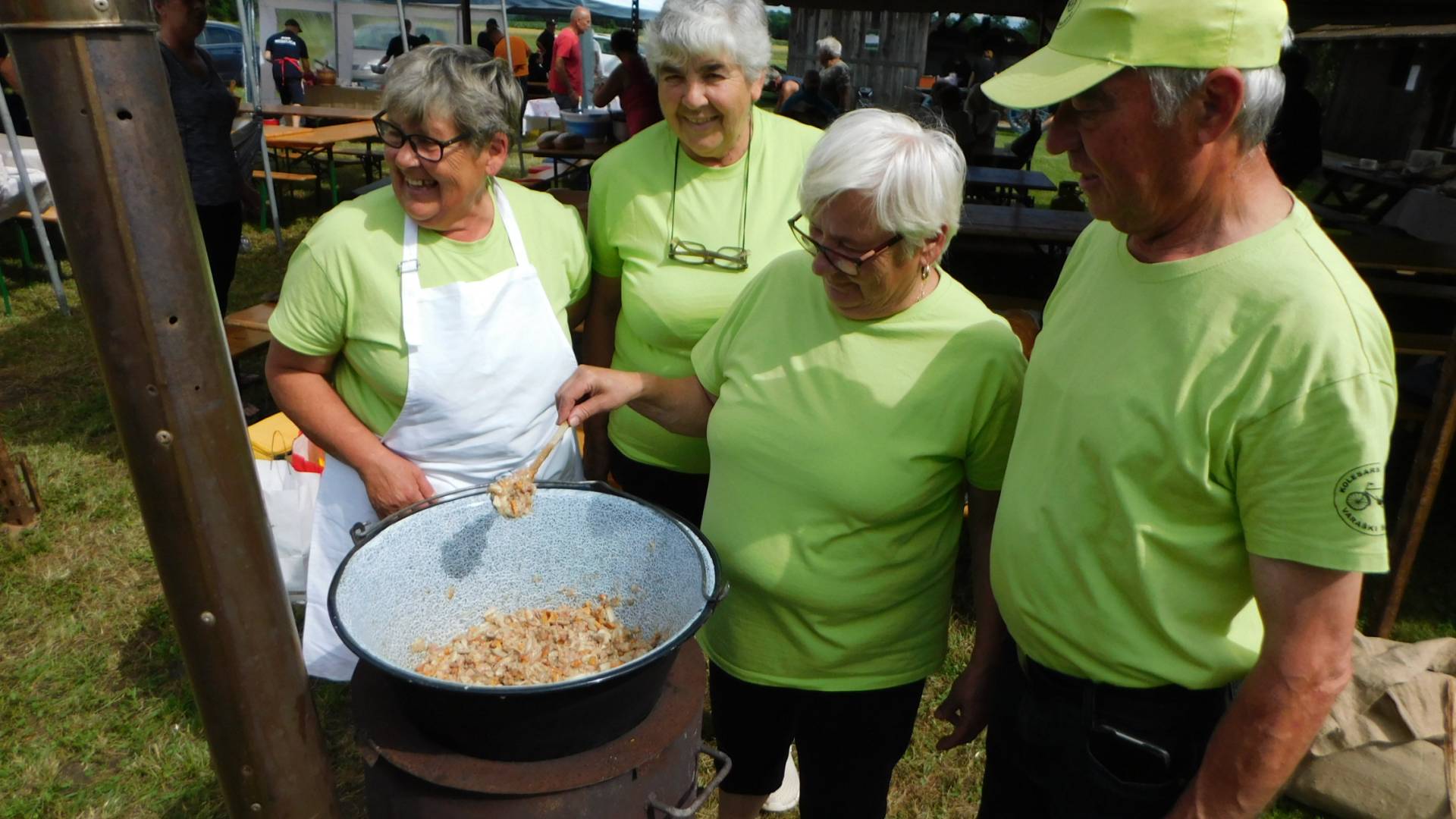 Kulturno društvo Rdeči zvonček Nedelica je v Nedelici v soboto, 24. junija, na Kovačevi domačiji pripravilo kuhanje jedi na žilico.