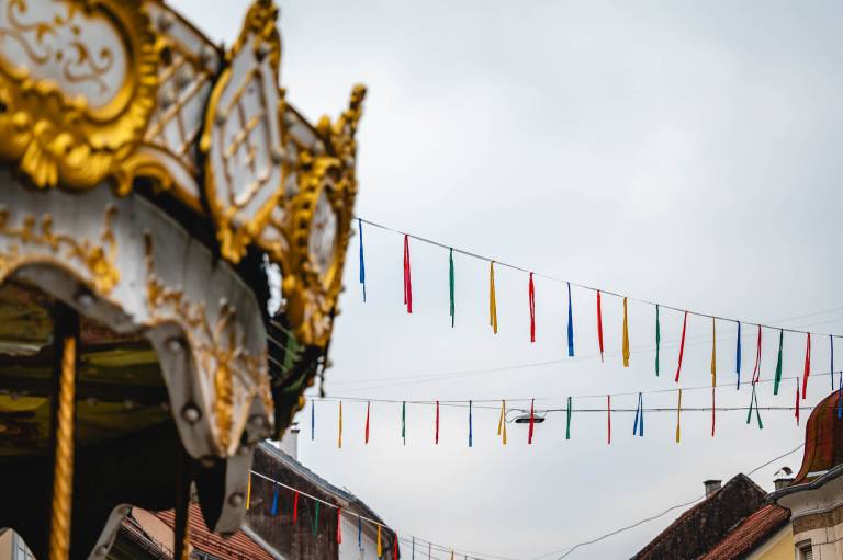 Z značilnimi pisanimi trakovi so dali mestu prepoznaven utrip, ki naznanja, da se nezadržno približuje največji etnografski dogodek v Sloveniji. Svojo, nekoliko bolj igrivo in norčavo podobo, dobivajo tudi izložbe trgovin in gostinskih lokalov.