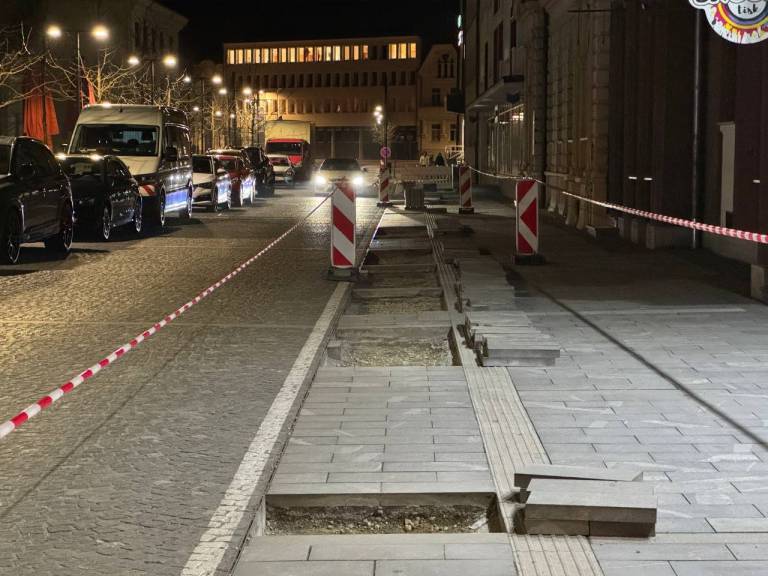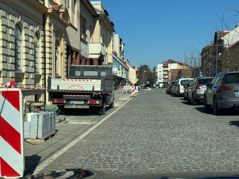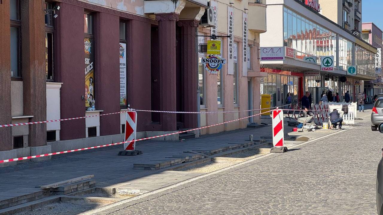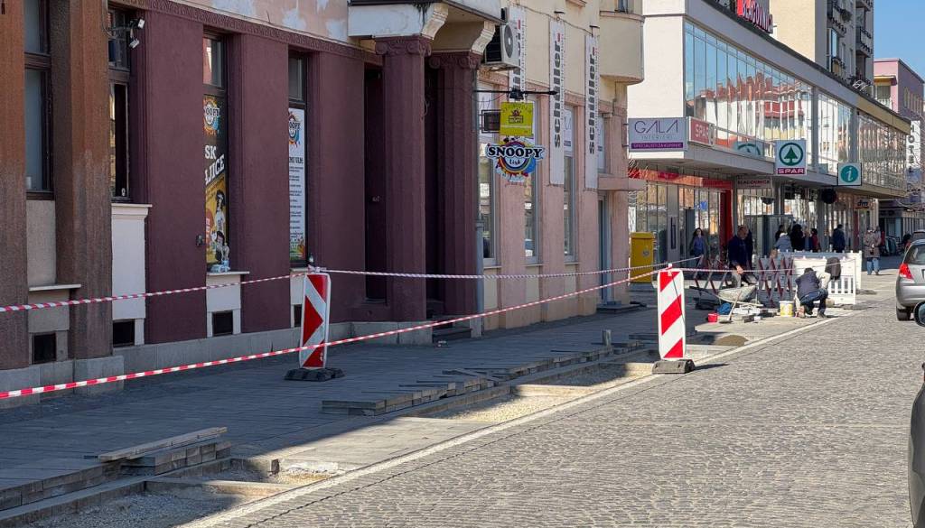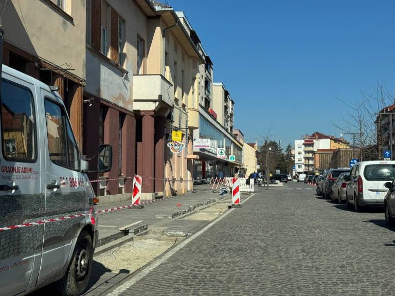 Na južnem delu Slovenske ulice je v teh dneh živahno, saj delavci pospešeno izvajajo zamenjavo poškodovanih granitnih kock.