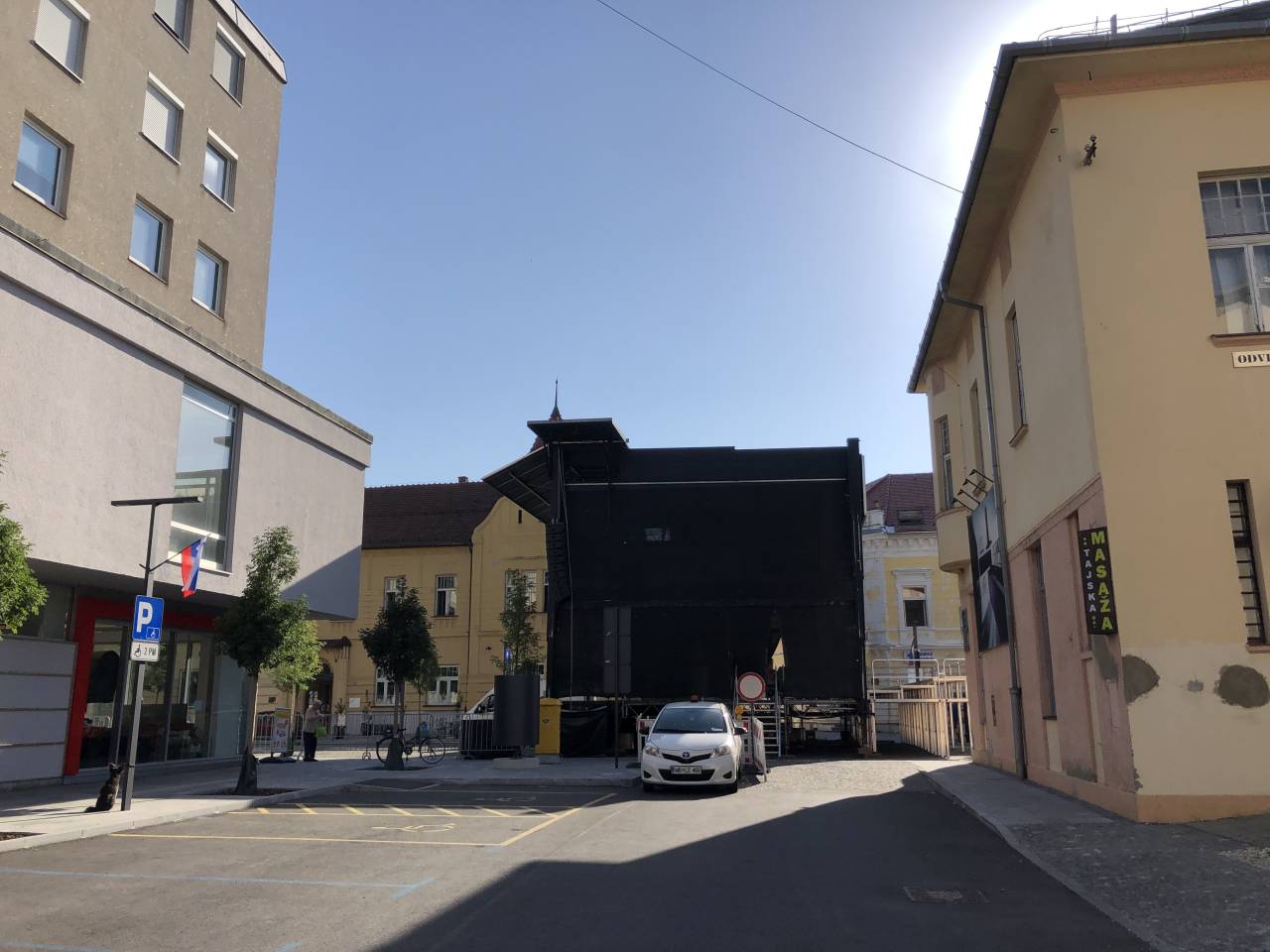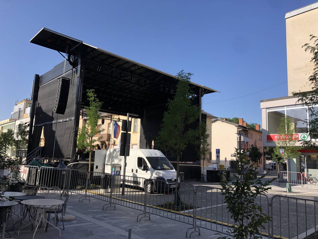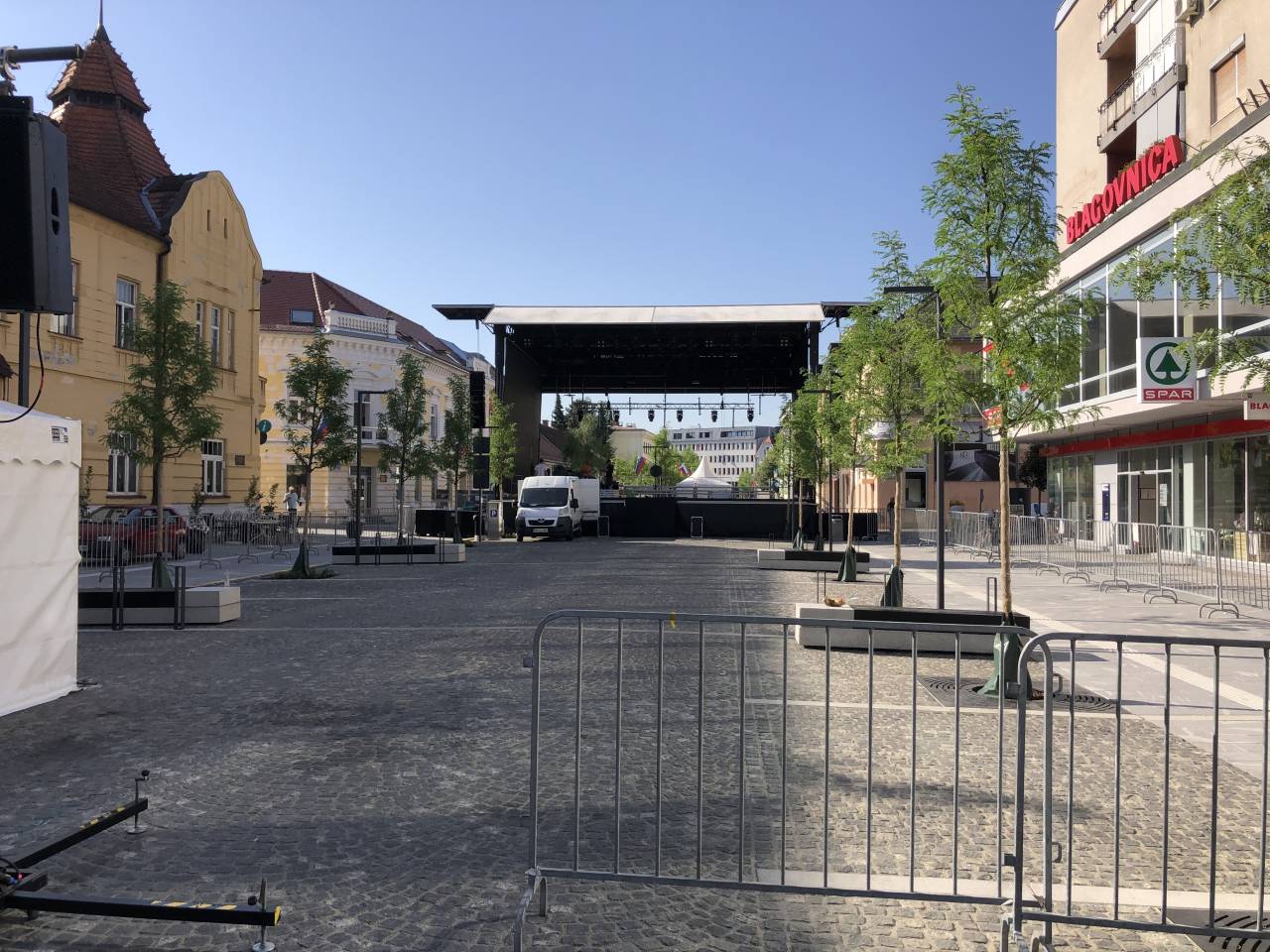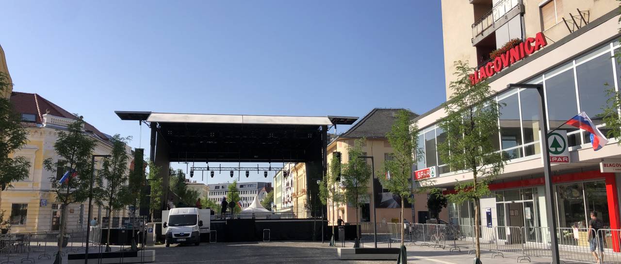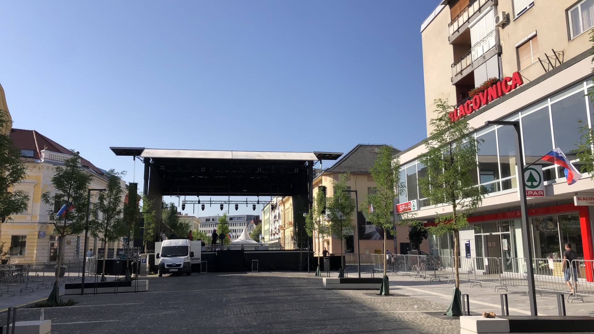 V središču mesta natančneje na Slovenski ulici so včeraj postavili velik oder, cesta je na odseku od Blagovnice do Zvezde zaprta.