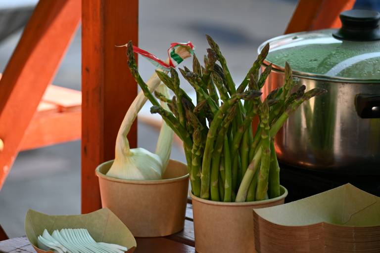 Langaše z dodatkom sira, česna in kisle smetane je ponujal Langoš Vinarium Lendava, šparglje pa Kmetija Sarjaš iz Dolge vasi.