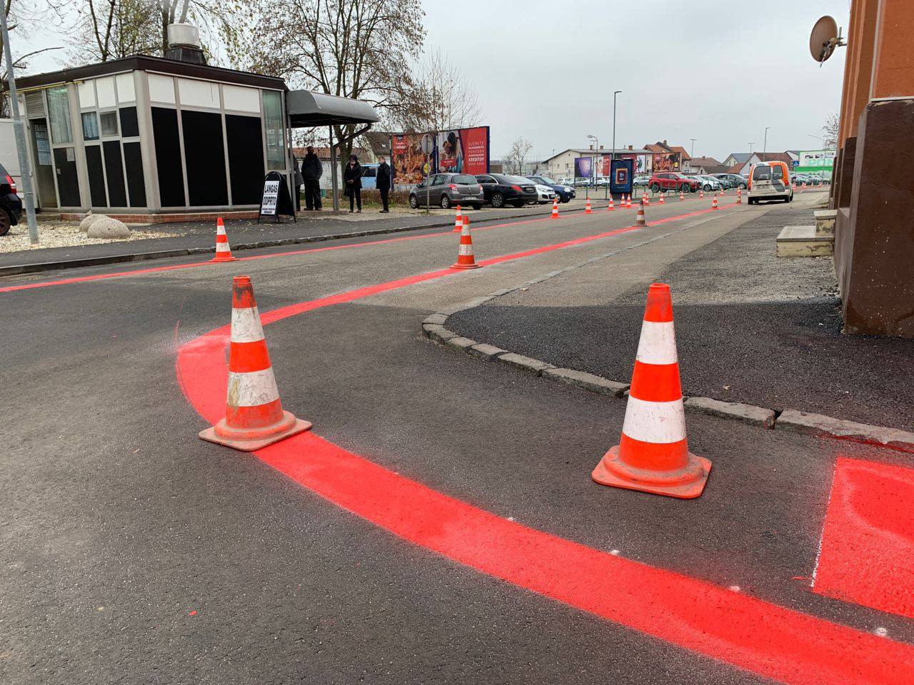 Dela potekajo tudi na Lendavski ulici, kjer urejajo parkirišče pred trgovino Mercator.