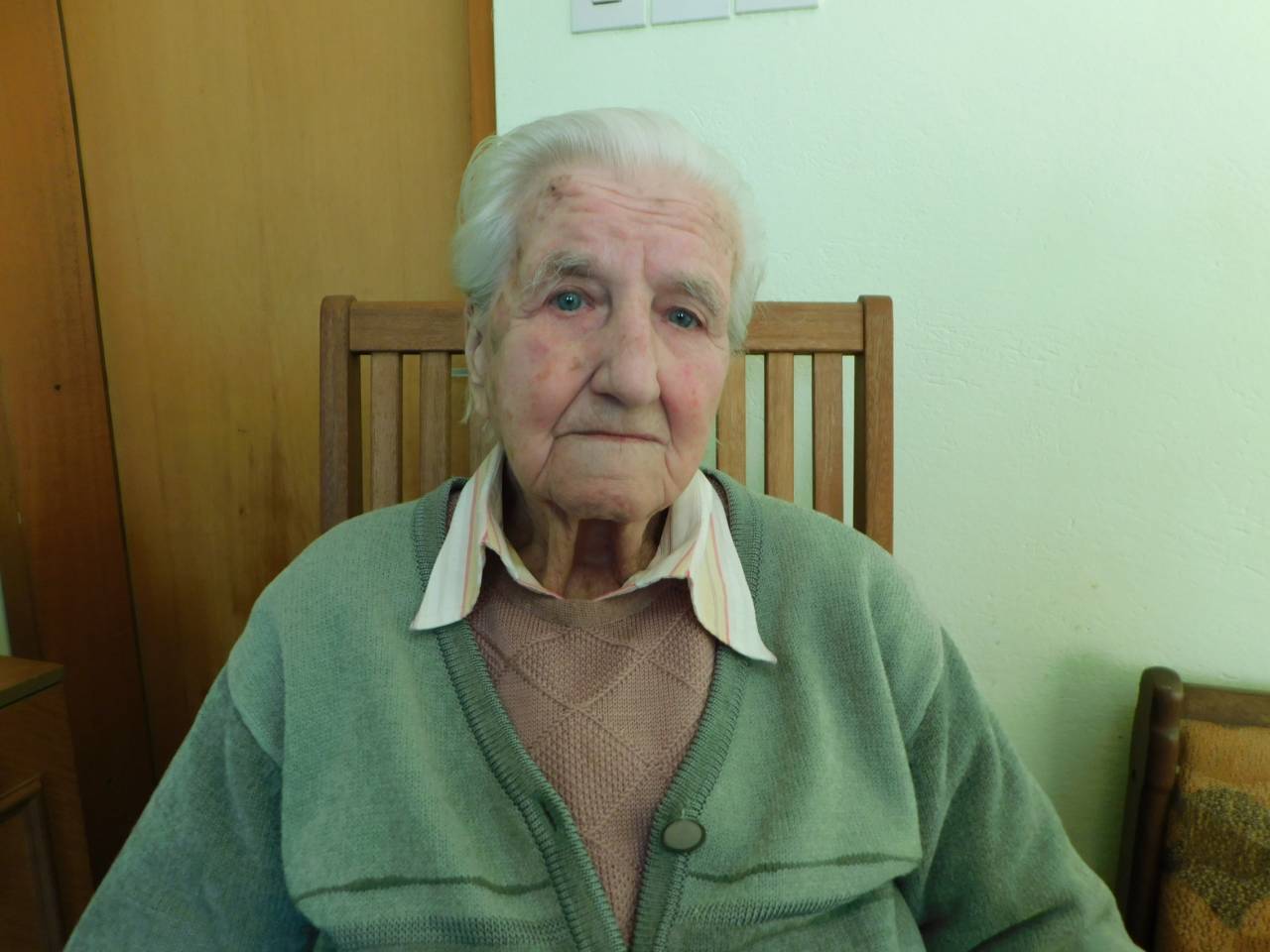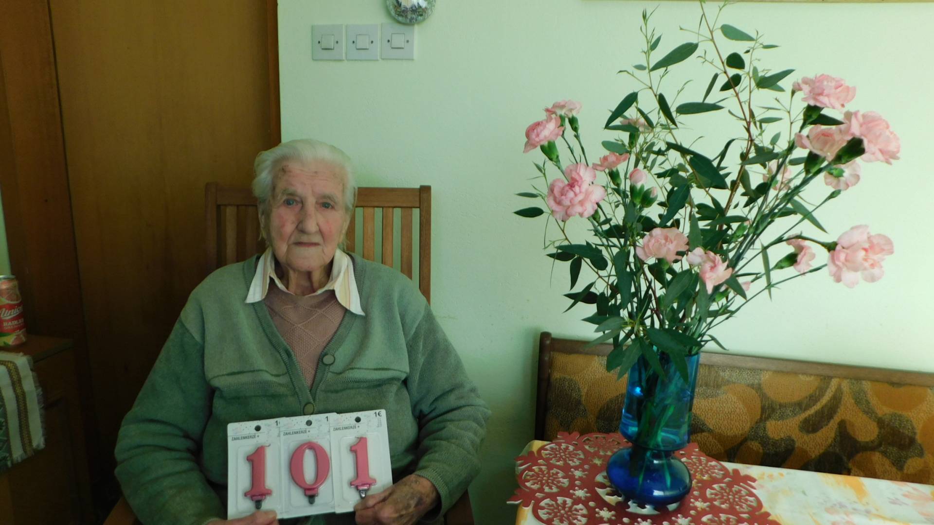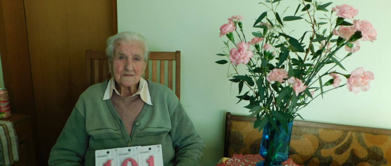 Kljub zavidljivim letom je njen dom obdan s cvetjem, spomin in zdravje pa ji še zmeraj odlično služita, čeprav si pri hoji pomaga s palico. Gospa si čas krajša z gledanjem televizije, saj je tako seznanjena z domačim in svetovnim dogajanjem.