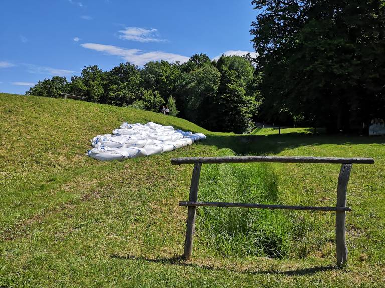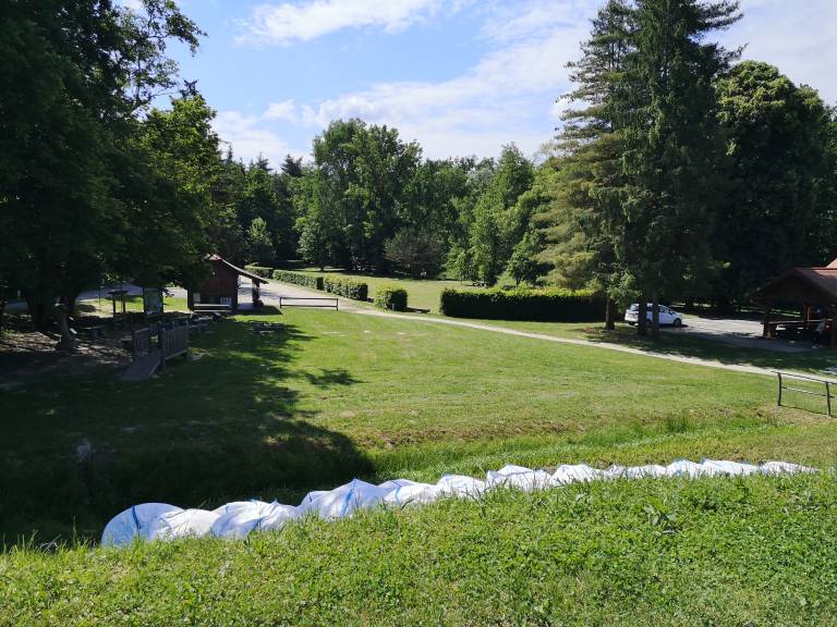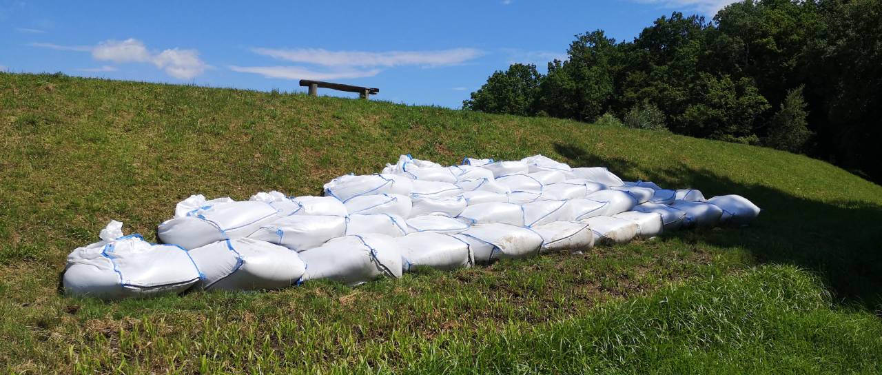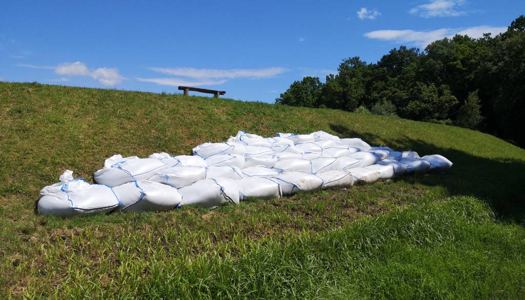 Ukrepati so morali takoj. Približno 70 let star nasip so obtežili z vrečami peska, gladino vode pa začeli zniževati.