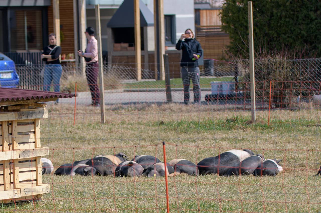 Aleksandar Jovanović, zastopnik lastnice zemljišča, pojasnjuje, da se je vreme zdaj obrnilo na toplo, prav tako so končali z vsemi pripravami. Zdaj pa se začenja vzreja okoli 50 krškopoljskih prašičev na Studencih.
