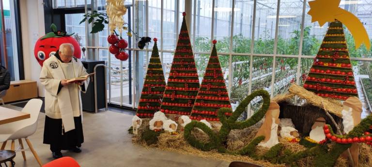 V petek pa je jaslice iz paradižnika blagoslovil še Toni Brinjovc, župnik in predstojnik skupnosti Župnije Turnišče.