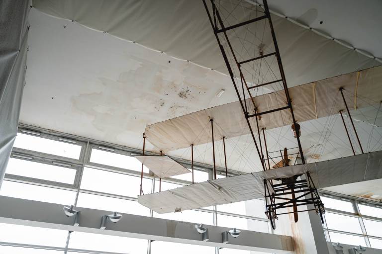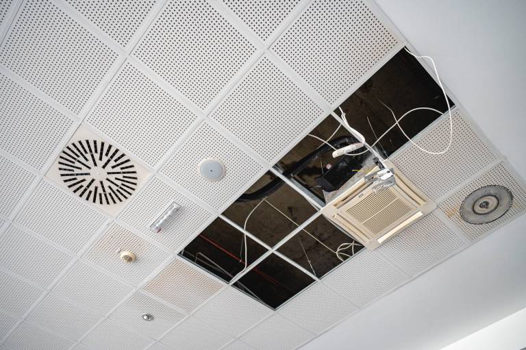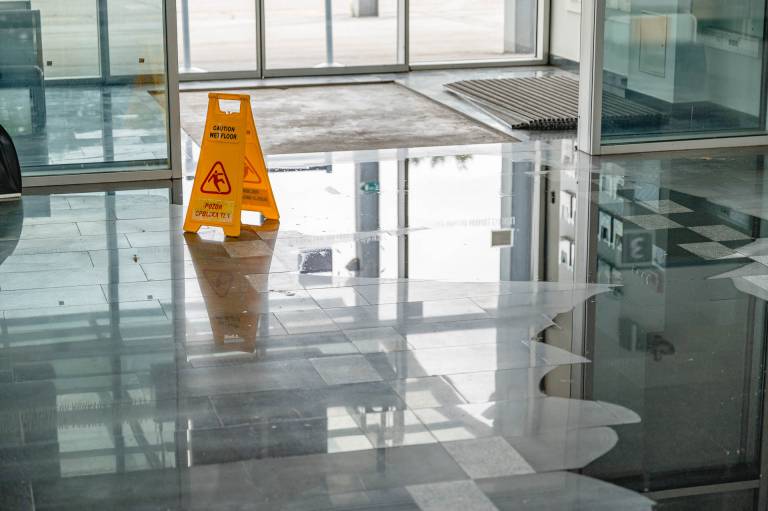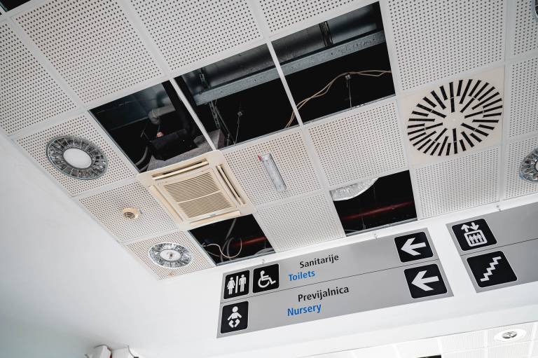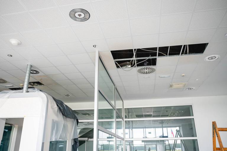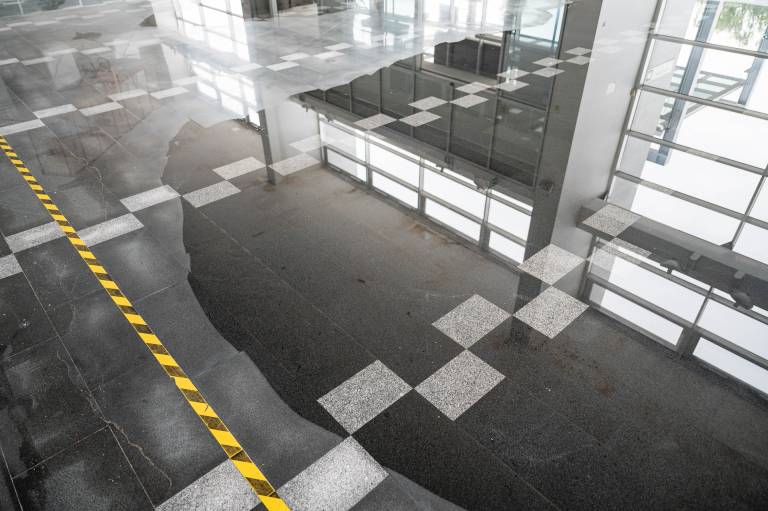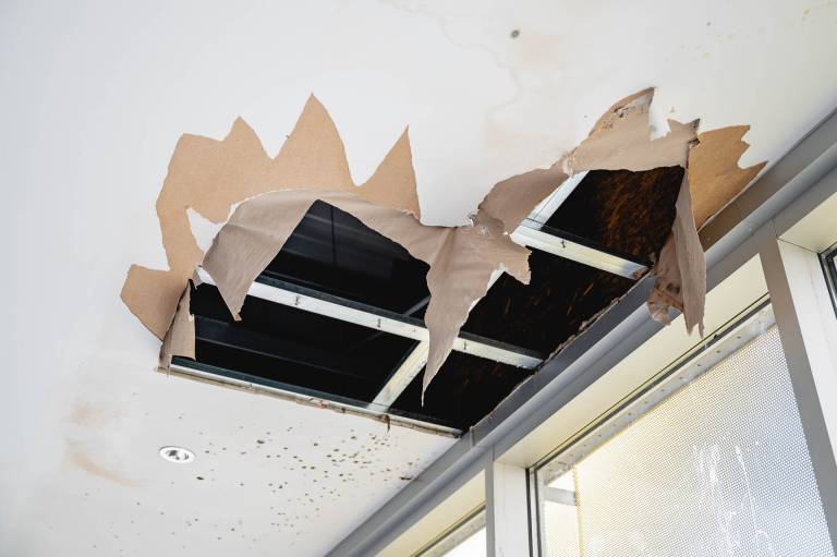 Močan dež in veter sta poškodovala streho, zalilo je prostore na več mestih odpada strop.